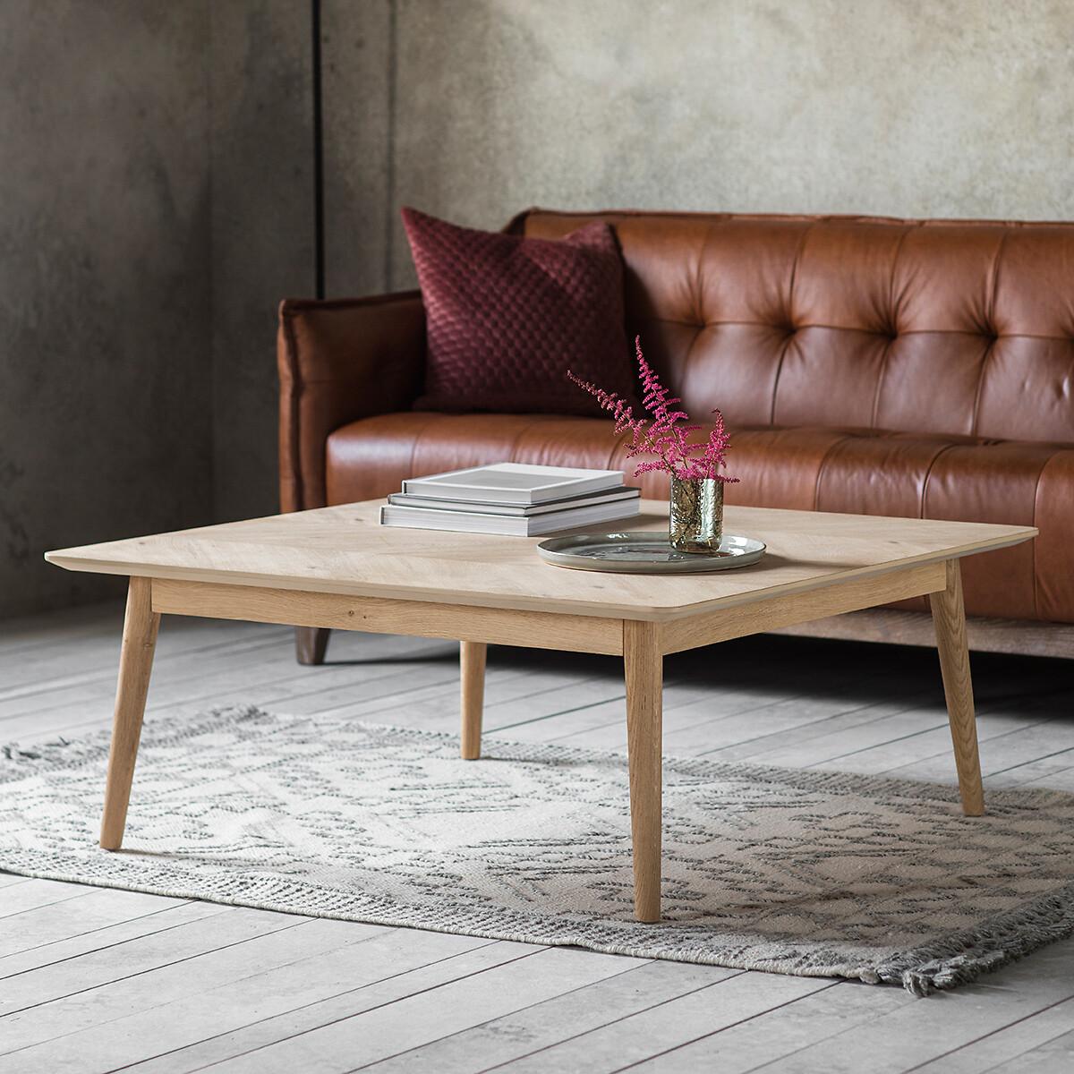 Cool and sleek Dhule Coffee Table, featuring a beautiful inlay chevron design, and made using European oak and rustic oak structured veneers which show the natural beauty of the oak grain and knots. Finished in a specialist matte lacquer, which keeps the timber looking natural and dry, with brushed out grain, the media unit is tactile to touch and looks amazing. Product details. Square shape. Herringbone design Partial assembly required (legs only)Product Composition - Oak. Product Dimensions - 100 cm x 100 cm x 40 cm , Weight - 18.5 KGPackage Dimensions - 107 cm x 107 cm x 14 cm, Weight 21.7 kg. This product will be dispatched by one of our trusted suppliers. You’ll be contacted by their selected courier about your delivery. Please note: this product cannot be delivered to all Offshore Islands, Northern Ireland or Republic of Ireland.