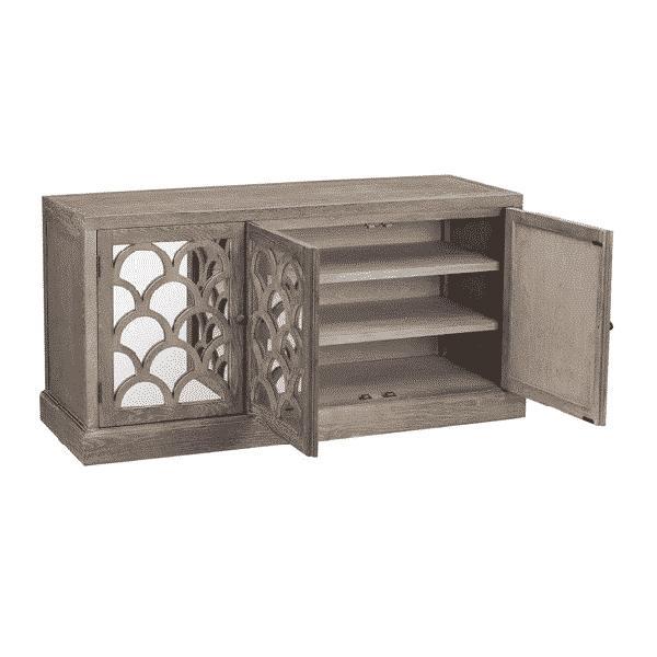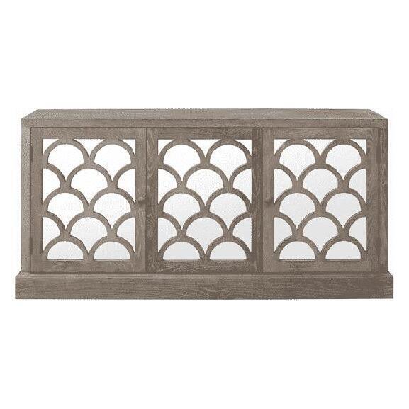 The charming Bentley Sideboard, made from grey aged oak and oak veneer, has mirrored doors embellished by an artistic scalloped detail and will suit many areas of the home. Place it in the dining room as a convenient sideboard to keep that special dinner service, table linen and drinks for the table too. Or why not use in the sitting-room? With its three doors, and ample storage space, this sideboard can be home to those items you use on a daily basis. Arrange framed family photographs on the top and a houseplant or ornament too. Measurements: L:160 x D:50 x H: 76 cm. *Moot Trading Ltd is not a lender and acts only as an introducer. The credit product is provided by Klarna Bank AB (publ). Credit is only available to permanent UK residents aged 18 and over, subject to status. Terms and conditions apply. Please note that the following products are not regulated by the FCA: Pay in 30 days and Pay in 3 instalments. Read More.