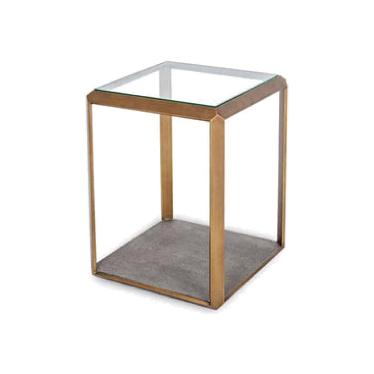 This beautiful Elmley brass end table from DI Designs is a versatile and stylish addition to your home. It measures 45cms long, 45cms wide and 60cms high, with a square glass top, brass legs and a green faux shagreen base. It is perfect for displaying a colourful potted plant, a vase of fresh flowers or a stylish table lamp to sit in the corner of your room and create a warm relaxing atmosphere. The compact size means that this table is easy to place and you can use just one table to add some style and colour or use several around the room. *Moot Trading Ltd is not a lender and acts only as an introducer. The credit product is provided by Klarna Bank AB (publ). Credit is only available to permanent UK residents aged 18 and over, subject to status. Terms and conditions apply. Please note that the following products are not regulated by the FCA: Pay in 30 days and Pay in 3 instalments. Read More.