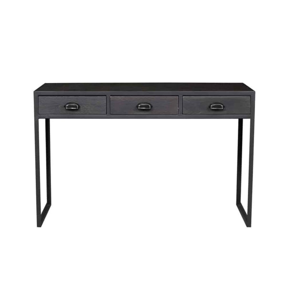 Be inspired every time you work or create when you use the stylishly modern DI Designs Grafton black desk. Taking its inspiration from the influential industrial look, this desk is beautifully constructed around a metal frame in slate grey. With three handy drawers, it has plenty of room for storing paper, pens and other necessary items. Finished in fashionable black and distressed grey, this desk will complement both traditional and modern décor with its clean lines and thoughtful detailing, including metal handles, drawer fronts of solid oak, and a faux concrete top. Its dimensions are 120cm long, 50cm deep and 76cm high. *Moot Trading Ltd is not a lender and acts only as an introducer. The credit product is provided by Klarna Bank AB (publ). Credit is only available to permanent UK residents aged 18 and over, subject to status. Terms and conditions apply. Please note that the following products are not regulated by the FCA: Pay in 30 days and Pay in 3 instalments. Read More.