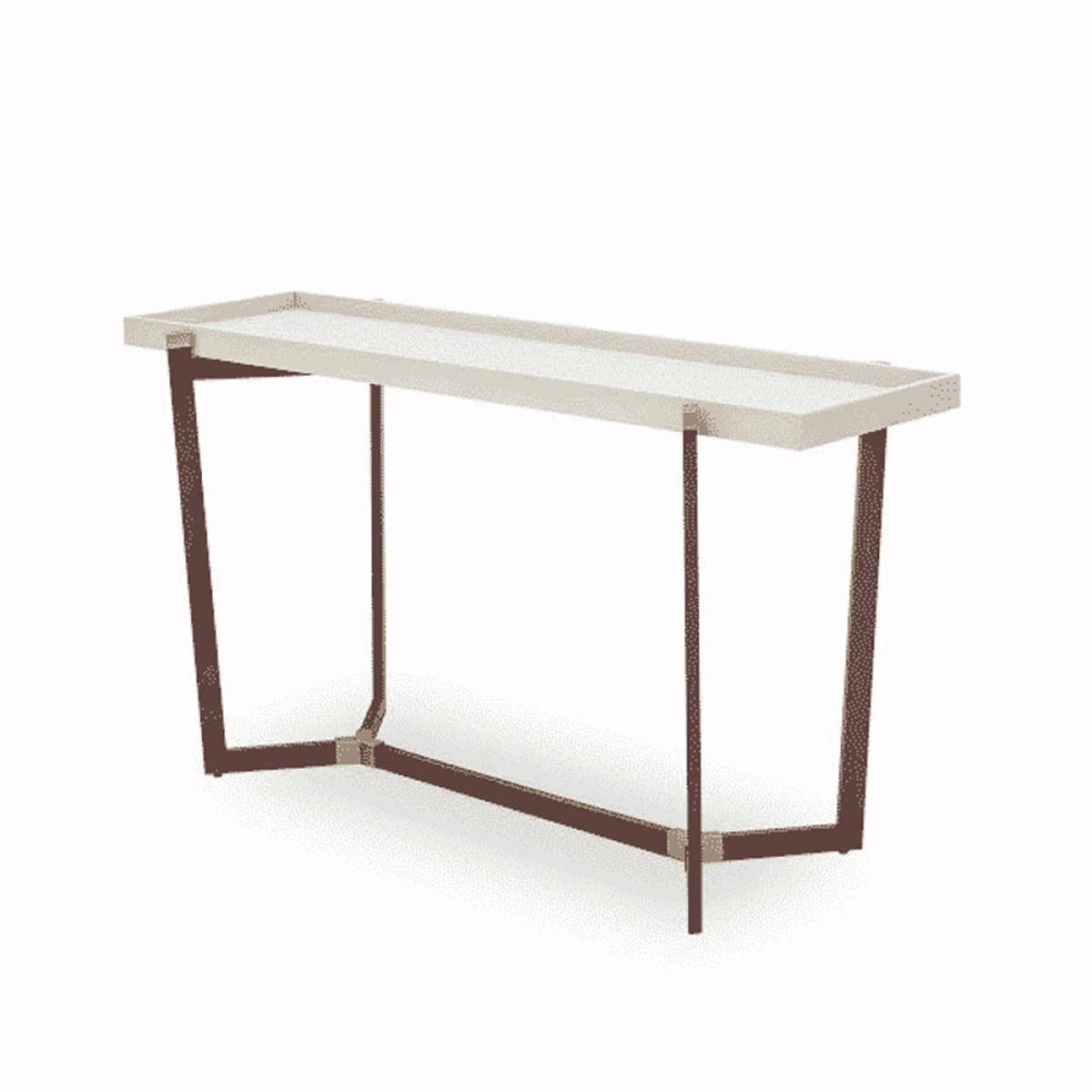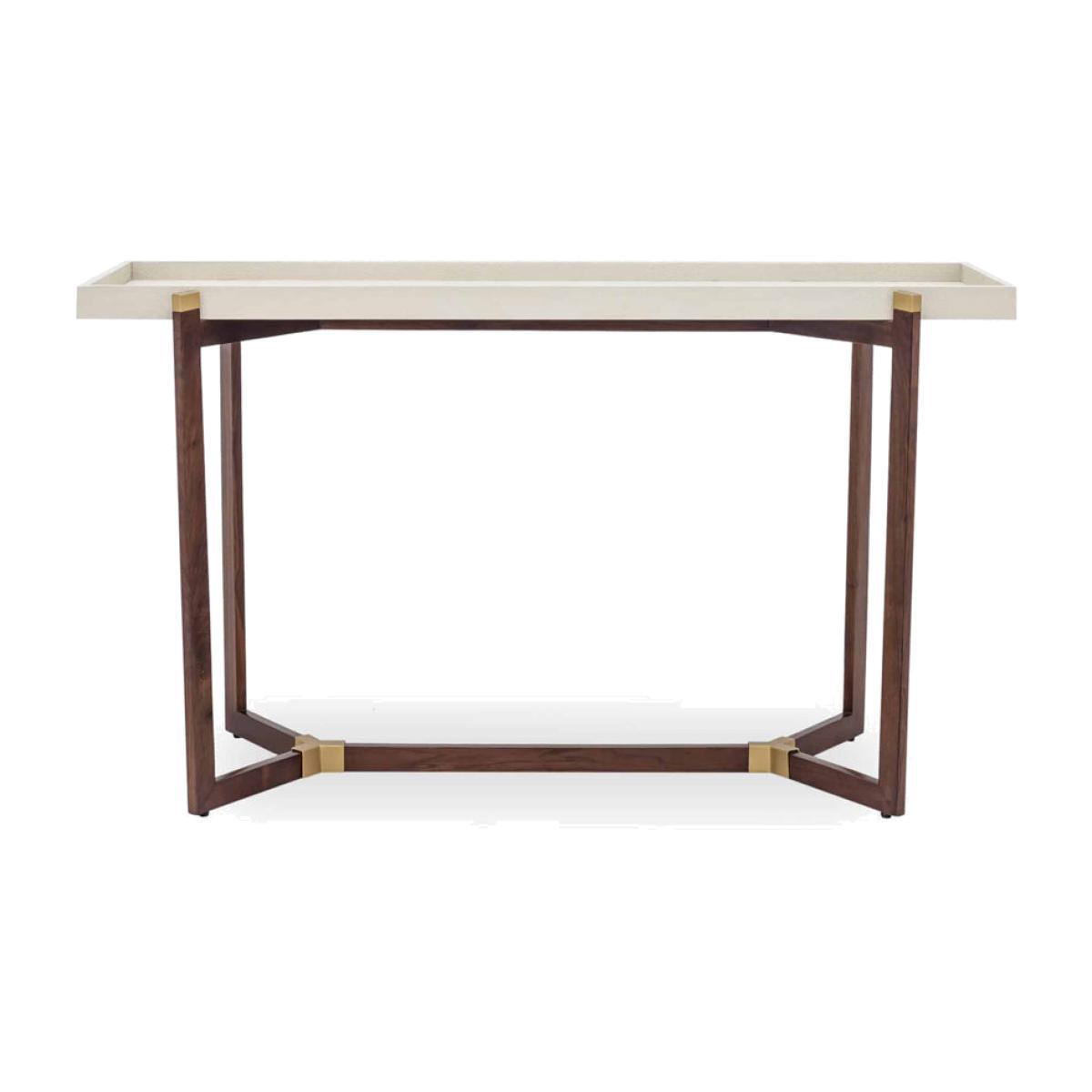 I love this piece for its sleek combination of cream and rich wood tones, which make it versatile for both classic and contemporary interiors. It works particularly well in hallway or entryway settings, where it can be styled with a statement lamp, a decorative tray, or a small gallery of frames. The clean lines and understated elegance mean it won't overwhelm a space but can still serve as a focal point. Practical styling tips include layering different textures-think a woven basket underneath or silk plants on top-to add visual interest without clutter. This console also pairs nicely with colours like soft grey, blush, or navy, making it adaptable across various decor schemes.