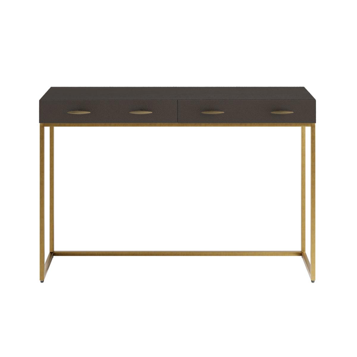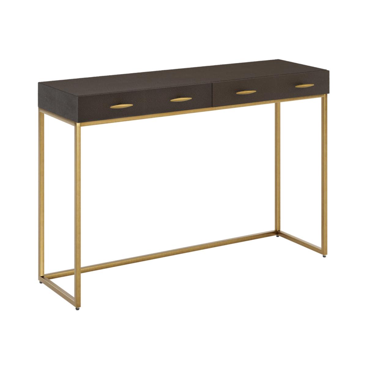 Add a touch of sophistication to your hallway with the DI Designs Hampton Console in Brown Shagreen. This beautifully crafted piece features a stylish design and a rich brown shagreen finish, perfect for displaying decor or storing essentials. Its elegant design ensures it will be a timeless addition to any hallway, offering both functionality and style. Dimensions: H: 81 x W: 122 x D: 38cm Weight: 30 kg