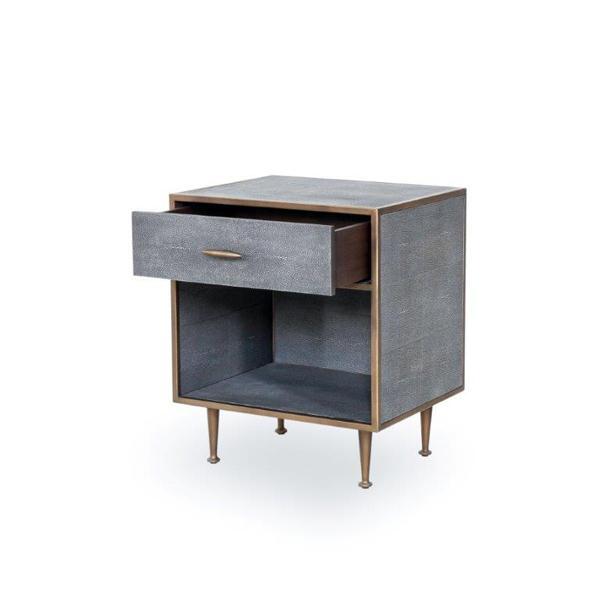 This Hampton bedside table combines the beautiful texture of faux shagreen with accents, legs and furnishings finished in antiqued brass. The result has an unmistakable air of luxury. The grey shagreen exudes quality and provides the soft contours you want in a tasteful bedroom. The colours will complement pastel or earthy bedroom colour schemes. In all, the Hampton is a stunning addition to any modern bedroom. This bedside table has one smooth-running drawer and a useful open storage cubicle. It stands 66cm tall with a width of 56cm and a depth of 46cm. You will need to attach the legs and drawer handle after arrival. *Moot Trading Ltd is not a lender and acts only as an introducer. The credit product is provided by Klarna Bank AB (publ). Credit is only available to permanent UK residents aged 18 and over, subject to status. Terms and conditions apply. Please note that the following products are not regulated by the FCA: Pay in 30 days and Pay in 3 instalments. Read More.