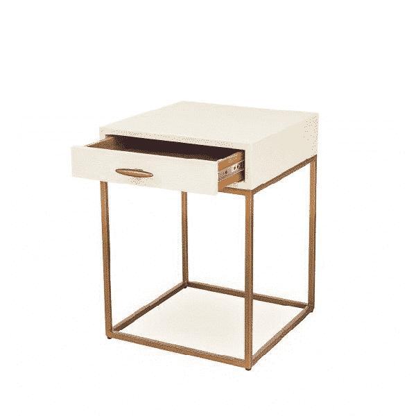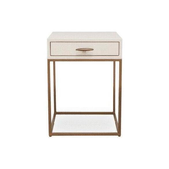 It's easy to guess how this gorgeous bedside table got its name, because it has all the art deco luxury associated in the popular imagination with the jazz age in The Hamptons, that affluent stretch of Long Island popularised in great American novels like The Great Gatsby. The slender cubic brass frame supports a single ivory drawer in faux shagreen, with walnut style wood lining its interior. Set on smooth gliding metal runners and with a simple brass handle the drawer provides ample storage, while the table top will accommodate a wide choice of lamps to create the perfect, soothing bedside companion. *Moot Trading Ltd is not a lender and acts only as an introducer. The credit product is provided by Klarna Bank AB (publ). Credit is only available to permanent UK residents aged 18 and over, subject to status. Terms and conditions apply. Please note that the following products are not regulated by the FCA: Pay in 30 days and Pay in 3 instalments. Read More.