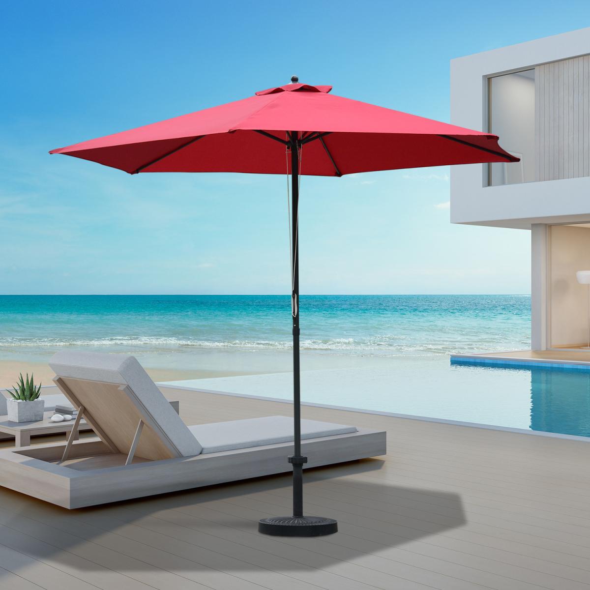 Ensure you are covered and protected with shade on hot and sunny days with this Sun Umbrella from Outsunny. Made to a classic parasol design, it features a large shade that provides lots of coverage to ensure it can keep multiple people protected at once. UV, water, fade and mould resistant, the shade has been made to last for years to come and is connected to the main steel pole with six ribs so it will keep stable and in place. Easy to open via the manual pull mechanism, it is finished with a top vent to allow air and heat to move around efficiently.