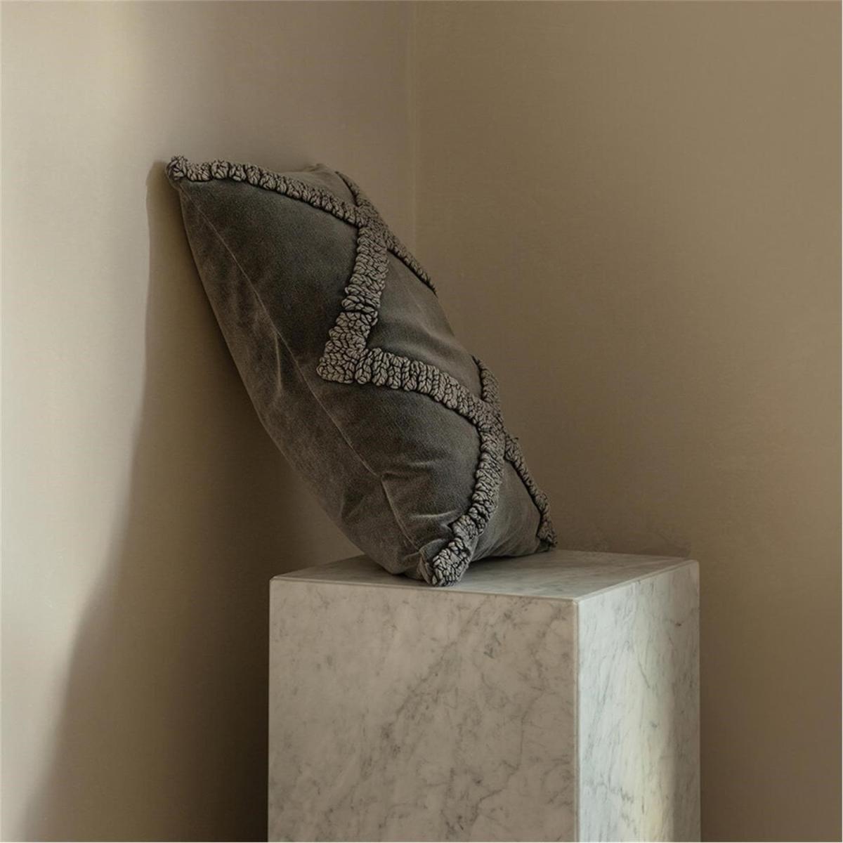 Refresh your pillowscape with this cushion from Luxe. Made from cotton in a stonewashed grey or rich red finish, this sumptuously soft cushion is adorned with a tufted geometric design.