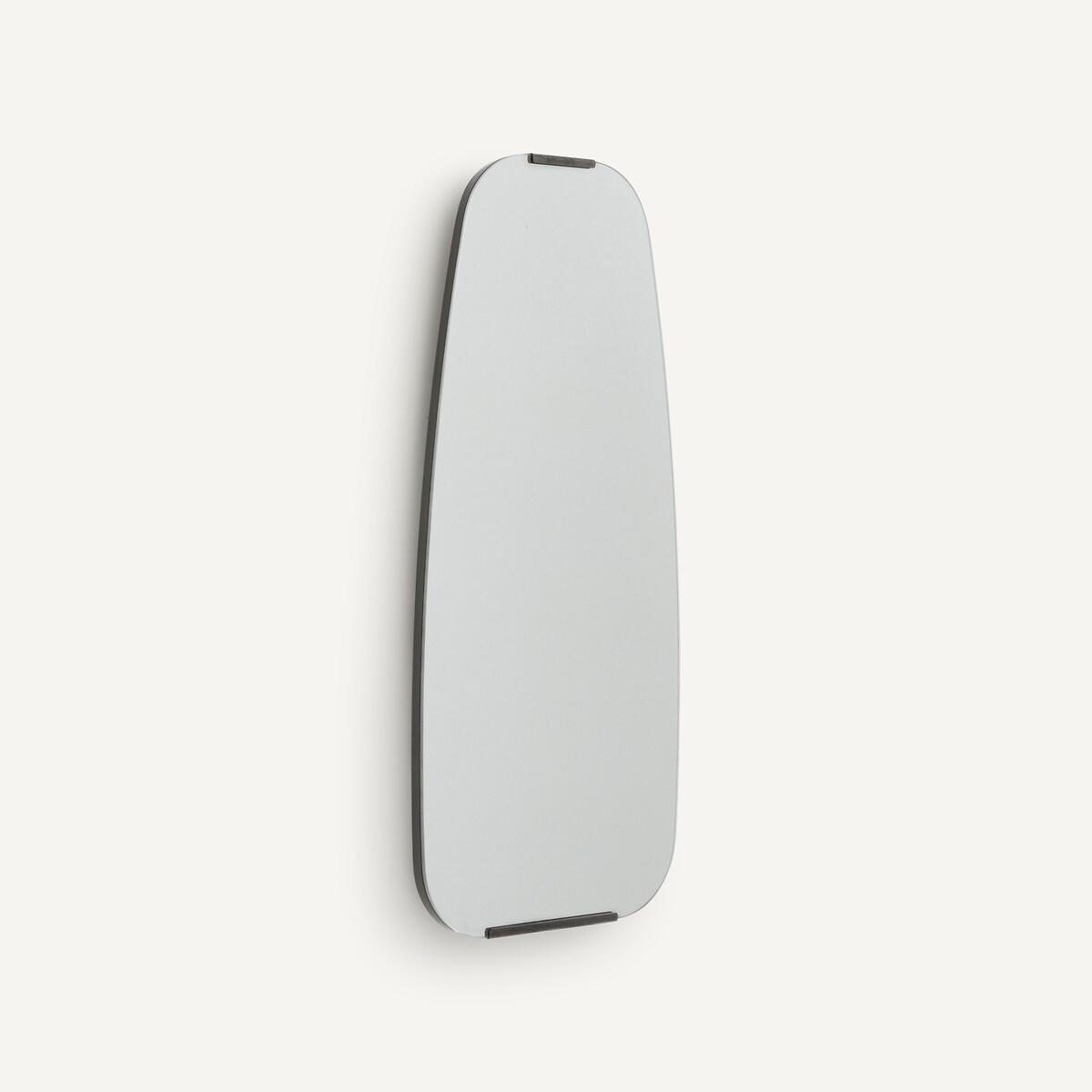 50s inspiration with finesse and subtlety. The Dialect mirrors are Iconic designs by AMPM. Exclusive creations rooted in the brand's DNA.Two colour strips in gun metal underline the organic shape of the mirror. Acclaimed by our customers, Dialect is available in several finishes. A signature AMPM mirror. Product Details • Gun metal coloured iron barrette • MDF back. Dimensions • Width: 32.6cm • Height: 74.5cm • Thickness: 2cm/1"