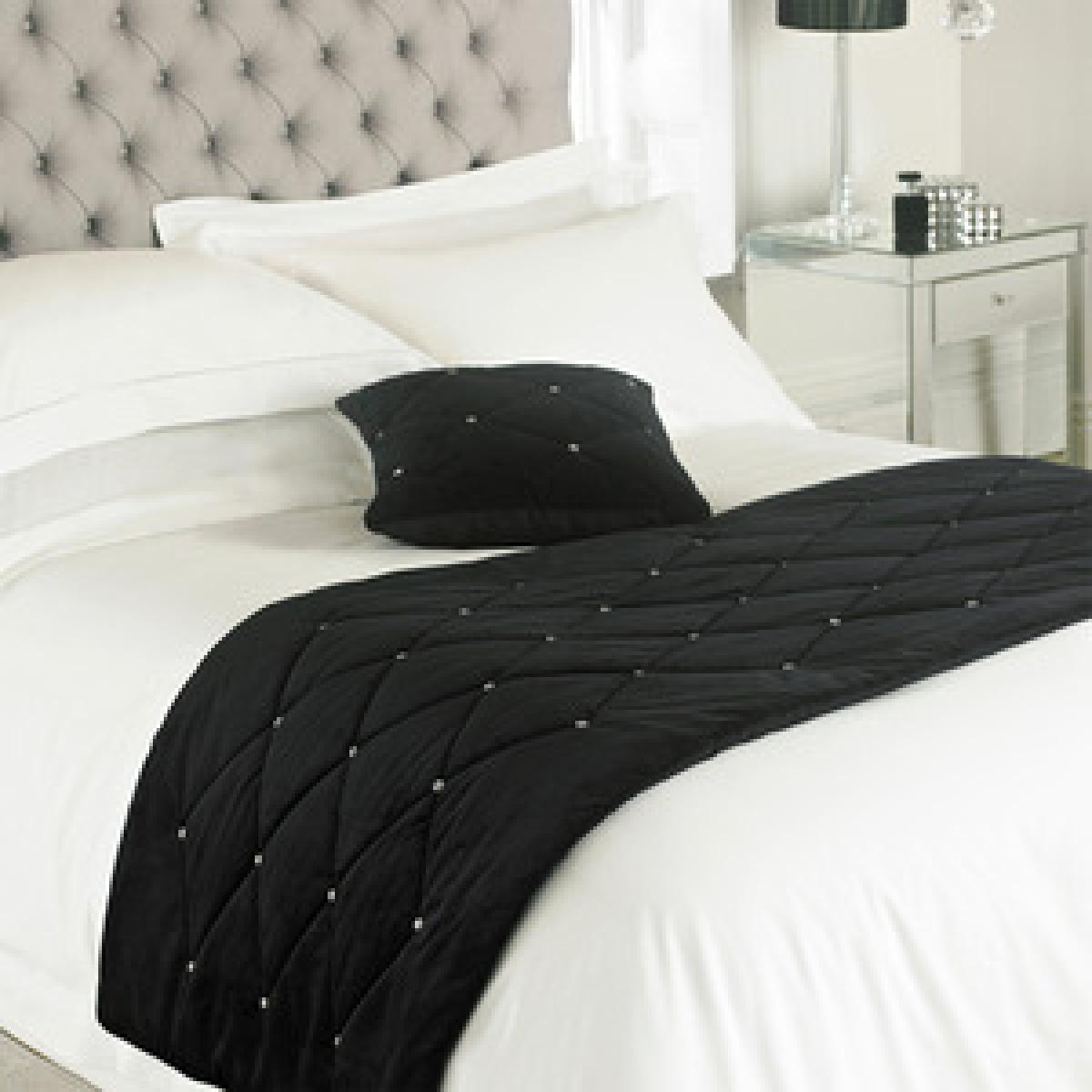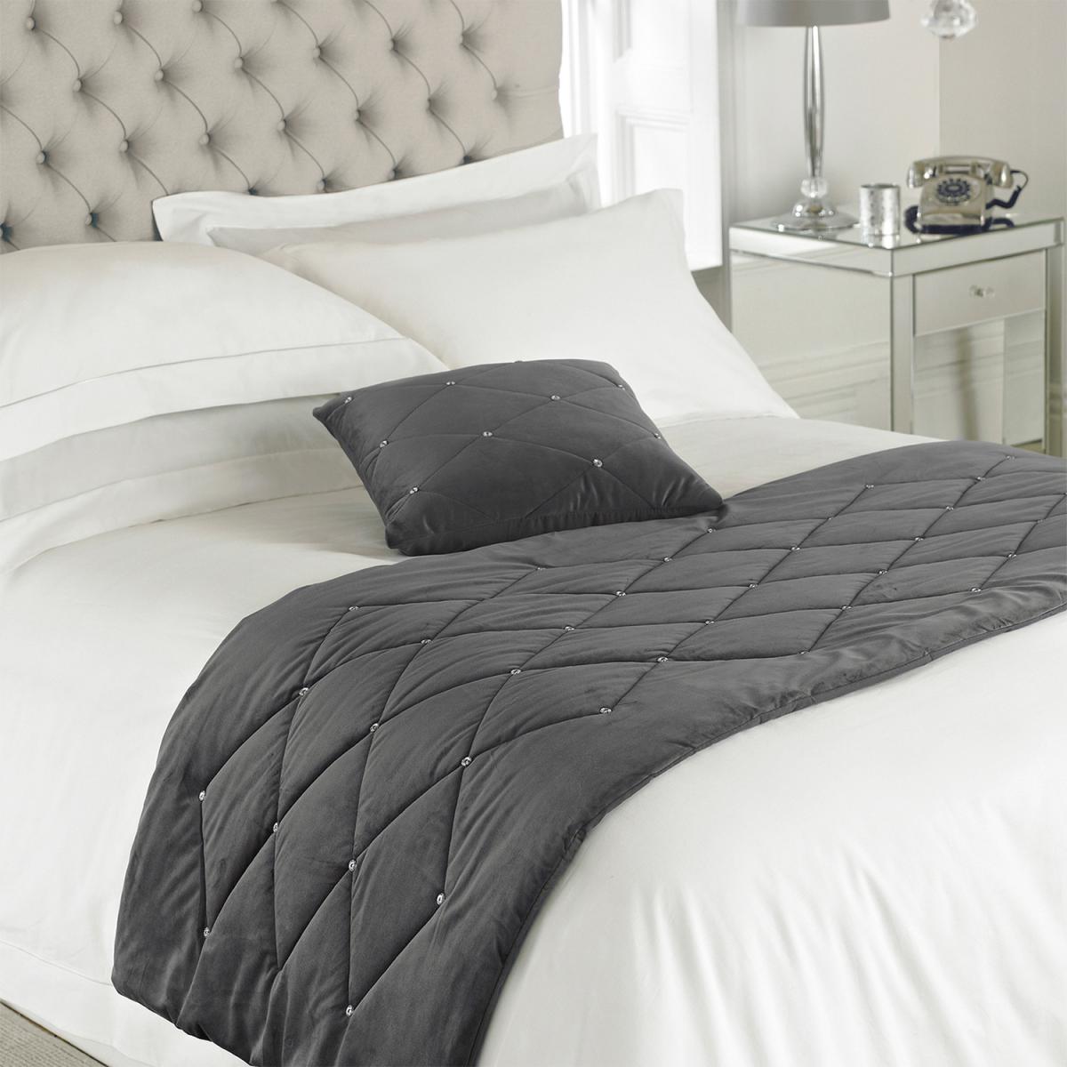 Give your room a soothing sparkle with this diamante bed runner. Featuring a delicate diamond-stitched design on luxurious faux velvet fabric, the quilted detailing works ideally with bedrooms and living rooms and is sure to complement an array of both traditional and contemporary interiors. Possibly the most notable aspect of this opulent runner is the embroidered diamante crystals that are lovingly stitched into each corner of the diamond design.