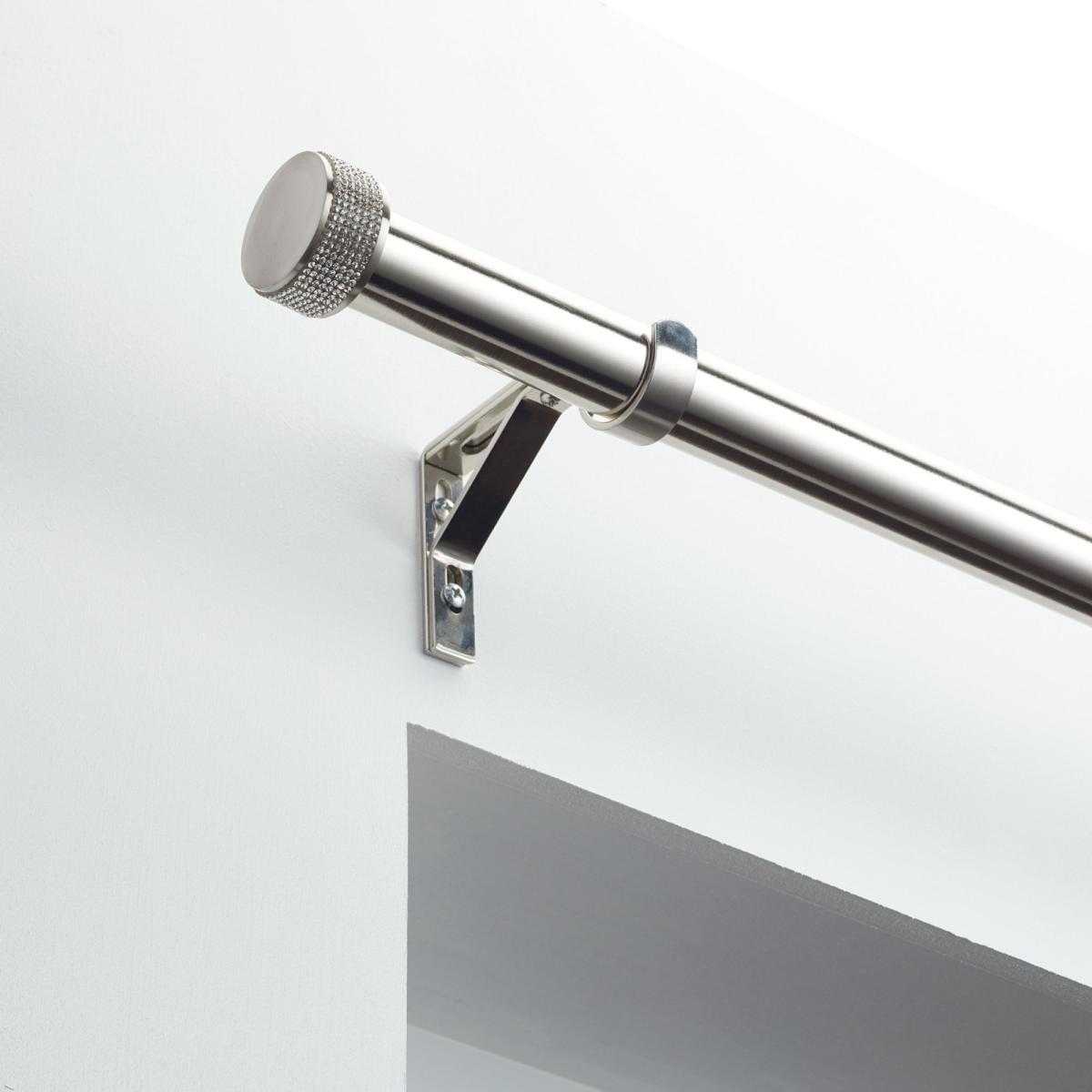 This eyelet metal curtain pole kit comes with a simple stud finial and diamante detail, brackets and all other fixings. With a 28mm diameter, this pole is perfect for medium-weight curtains. This pole is easy to install, and matching accessories are available to purchase separately. Rings not included. Please note: All curtain poles in lengths of 240cm and above come in two lengths with a joiner and three brackets. Please note: the pole length stated does not include the finials. Please allow up to an additional 14cm to the pole length to accommodate the finials. Disclaimer:. This pole can be cut to size and the finials can be removed.