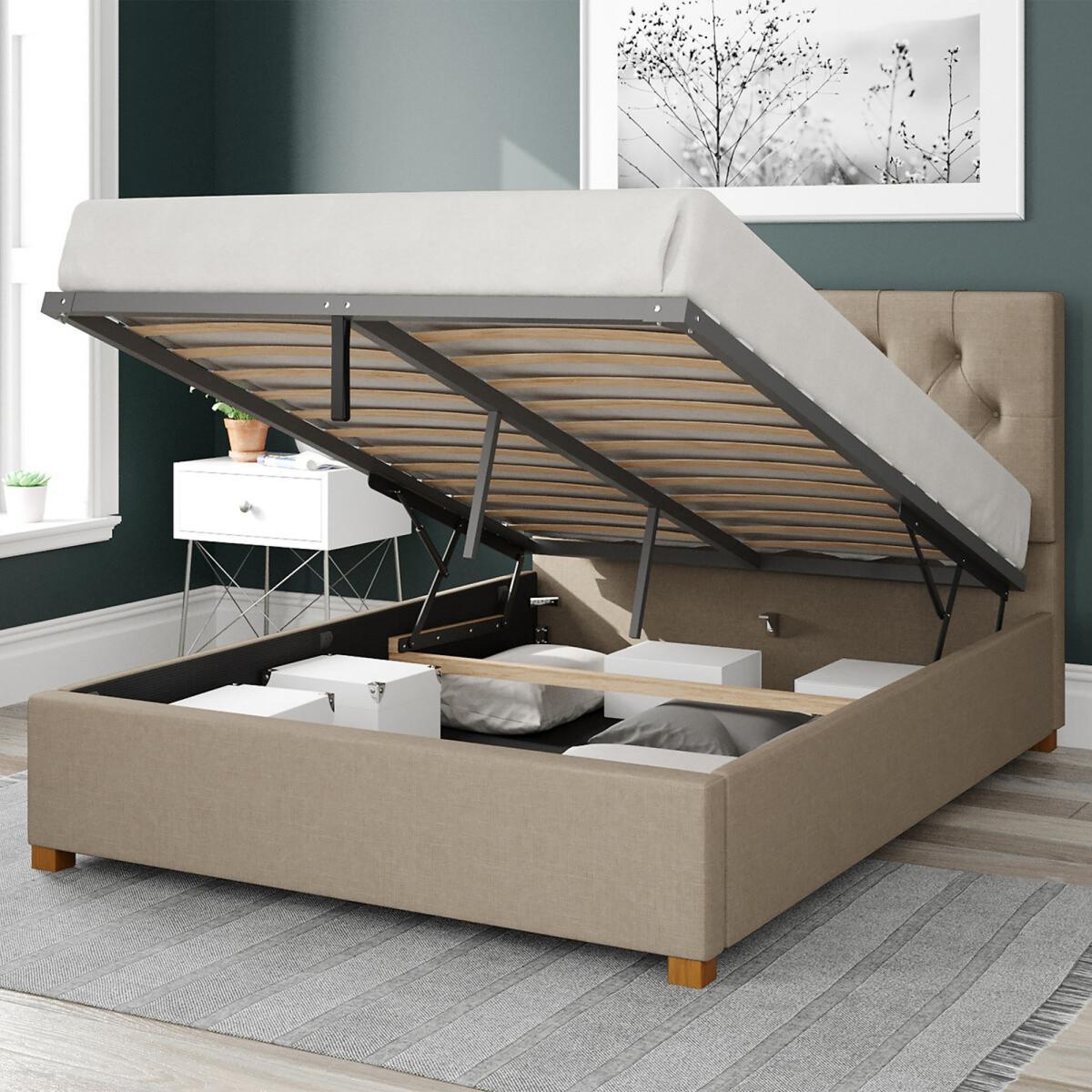 Please note: this product cannot be delivered to all Offshore Islands, Northern Island or Republic of Ireland. This product will be dispatched by one of our trusted suppliers. You’ll be contacted by their selected courier about your delivery. Please note this item will be delivered to your doorstep. Quality upholstered ottoman storage bed, hand crafted in the UK.Each headboard is constructed with deep foam padding perfect for sitting up in bed and reading. We believe quality has no short cuts, meaning all our designs are hand upholstered by our skilled craftsmen. Our UK ottoman design features chunky upholstered panels, which means it is built to last. Quality sprung slats improve comfort and mattress lifespan. The easy lift ottoman mechanism is supported with quality gas pistons, enabling the storage to be accessed with minimal effort. Once the ottoman is elevated it will hold position, allowing hands free access to storage. Our ottomans offer the perfect storage solutions for rooms with no or limited space with a spacious storage area of approximately 28cm. The fabric base attaches to the underside of the bed, protecting your stored items. Each ottoman is finished with hardwood feet which have been hand turned and varnished. Self Assembly Required. Swatch service: We offer a FREE swatch service. Please email samples@aspire-furniture.co.uk and include the below information:Please include 'La Redoute' in the title of your email. Name and address:Product: Olivier Ottoman Bed. Fabric: Linen. Colour: (in order to receive the correct colour please use the table below to identify correct reference)Your swatches will be delivered within 10 working days (subject to availability) Colour Description Colour to Request Charcoal Charcoal Beige Beige Silver-Coloured Silver Burgundy Bordeaux Ecru Off White Natural Natural Granite Granite Grey Grey Product Dimensions: Single: 112cmx100cmx209cm. Small Double:112cmx130cmx209cmDouble:112cmx147cmx209cmKing:112cmx160cmx219cm Super King:112cmx190cmx219cm. Please remember to measure your available space before ordering. Single: Parcel 1 Packaged Dimensions 140cmx 113cmx 12cm 12 Weight: 12kg Parcel 2 Packaged Dimensions 212cmx 32cmx 19cm 13 Weight: 13kg Parcel 3 Packaged Dimensions 240cmx 180cmx 12 18 Weight: 18kg. Small Double: Parcel 1 Packaged Dimensions 140cmx 113cmx 12cm Weight: 19kg Parcel 2 Packaged Dimensions 212cmx 32cmx 19cm Weight: 17kg Parcel 3 Packaged Dimensions 240cmx 180cmx 12cm Weight: 22kgDouble: Parcel 1 Packaged Dimensions 171cmx 113cmx 12cm Weight: 22kg Parcel 2 Packaged Dimensions 212cmx 32cmx 19 cm Weight: 18kg Parcel 3 Packaged Dimensions 240cmx 180cmx 12cm Weight: 23kg. King: Parcel 1 Packaged Dimensions 171cmx 113cmx 12cm Weight: 27kg Parcel 2 Packaged Dimensions 212cmx 32cmx 19cm Weight: 22kg Parcel 3 Packaged Dimensions 240cmx 180cmx 12cm Weight: 25kg Super King:Parcel 1 Packaged Dimensions 201cmx 113cmx 12cm Weight: 30kg Parcel 2 Packaged Dimensions 212cmx 32cmx 19cm Weight: 25kg Parcel 3 Packaged Dimensions 240cmx 180cmx 12cm Weight: 27kg. Upholstered Fabric Composition: Linen