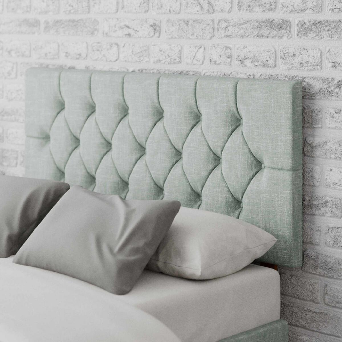Please note: this product cannot be delivered to all Offshore Islands, Northern Island or Republic of Ireland. This product will be dispatched by one of our trusted suppliers. You’ll be contacted by their selected courier about your delivery. Please note this item will be delivered to your doorstep. A contemporary headboard featuring a diamond scored pattern design and button detailing. Its modern design enables you to turn your bed frame into a wonderful bedroom centrepiece. It is finished in Pure Pastel Cotton, a luxurious soft touch upholstery fabric with a hand-woven look and slight texture. The fabric has an ultra-smooth feel and exudes quality from a distance and up close. The headboard is hand crafted in the UK and features a chunky 15mm wooden panel, that can be fitted universally to any standard divan or frame. Swatch service: We offer a FREE swatch service. Please email samples@aspire-furniture.co.uk and include the below information:Please include 'La Redoute' in the title of your email. Name and address:Product: Olivier Headboard. Fabric: Pure Pastel Cotton Colour: (in order to receive the correct colour please use the table below to identify correct reference)Your swatches will be delivered within 10 working days (subject to availability) Colour Description Colour to Request Pale green Eau De Nil Storm Storm Tea Rose Tea Rose Product Dimensions: Single: 60cmx90cmx8cm. Small Double: 60cmx120cmx8cm. Double: 60cmx135cmx8cmKing:60cmx150cmx8cm Super King: 60cmx180cmx8cm. Please remember to measure your available space before ordering. Packaged Dimensions: Single: 91cmx 61cmx 9cm Weight: 11kg. Small Double: 121cmx 61cmx 9cm Weight: 13kg. Double: 136cmx 61cmx 9cm Weight: 16kg. King: 151cmx 61cmx 9cm Weight: 18kg Super King: 181cmx 61cmx 9cm Weight: 21kg. Upholstered Fabric Composition: Cotton