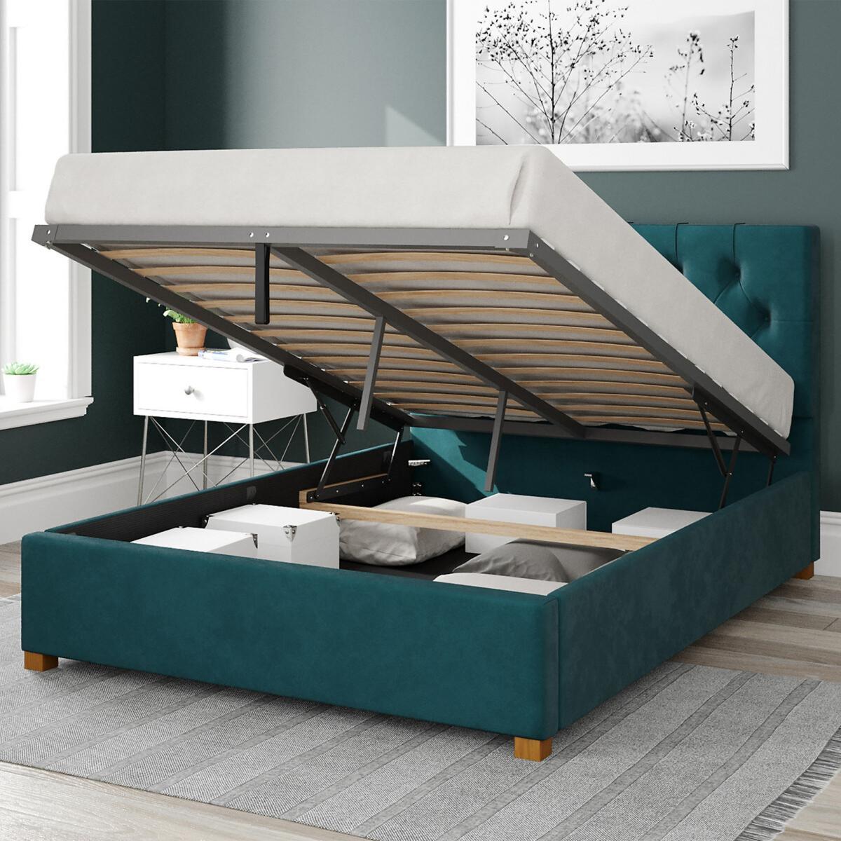 Please note: this product cannot be delivered to all Offshore Islands, Northern Island or Republic of Ireland. This product will be dispatched by one of our trusted suppliers. You’ll be contacted by their selected courier about your delivery. Please note this item will be delivered to your doorstep. Quality upholstered ottoman storage bed, hand crafted in the UK.Each headboard is constructed with deep foam padding perfect for sitting up in bed and reading. We believe quality has no short cuts, meaning all our designs are hand upholstered by our skilled craftsmen. Our UK ottoman design features chunky upholstered panels, which means it is built to last. Quality sprung slats improve comfort and mattress lifespan. The easy lift ottoman mechanism is supported with quality gas pistons, enabling the storage to be accessed with minimal effort. Once the ottoman is elevated it will hold position, allowing hands free access to storage. Our ottomans offer the perfect storage solutions for rooms with no or limited space with a spacious storage area of approximately 28cm. The fabric base attaches to the underside of the bed, protecting your stored items. Each ottoman is finished with hardwood feet which have been hand turned and varnished. Self Assembly Required. Swatch service: We offer a FREE swatch service. Please email samples@aspire-furniture.co.uk and include the below information:Please include 'La Redoute' in the title of your email. Name and address:Product: Olivier Ottoman Bed. Fabric: Velvet. Colour: (in order to receive the correct colour please use the table below to identify correct reference)Your swatches will be delivered within 10 working days (subject to availability) Colour Description Colour to Request Forest Green Forest Green Berry Berry Slate Distressed Velvet - Slate Silver Coloured Silver Platinum Silver Coloured Distressed Velvet - Platinum Teal Teal Blush Pink Blush Steel Steel Ochre Ochre Ebony Black Ebony Navy Navy Light Grey Light Silver Emerald Emerald Duck Egg Blue Duck Egg Product Dimensions: Single: 112cmx100cmx209cm. Small Double:112cmx130cmx209cmDouble:112cmx147cmx209cmKing:112cmx160cmx219cm Super King:112cmx190cmx219cm. Please remember to measure your available space before ordering. Single: Parcel 1 Packaged Dimensions 140cmx 113cmx 12cm 12 Weight: 12kg Parcel 2 Packaged Dimensions 212cmx 32cmx 19cm 13 Weight: 13kg Parcel 3 Packaged Dimensions 240cmx 180cmx 12 18 Weight: 18kg. Small Double: Parcel 1 Packaged Dimensions 140cmx 113cmx 12cm Weight: 19kg Parcel 2 Packaged Dimensions 212cmx 32cmx 19cm Weight: 17kg Parcel 3 Packaged Dimensions 240cmx 180cmx 12cm Weight: 22kgDouble: Parcel 1 Packaged Dimensions 171cmx 113cmx 12cm Weight: 22kg Parcel 2 Packaged Dimensions 212cmx 32cmx 19 cm Weight: 18kg Parcel 3 Packaged Dimensions 240cmx 180cmx 12cm Weight: 23kg. King: Parcel 1 Packaged Dimensions 171cmx 113cmx 12cm Weight: 27kg Parcel 2 Packaged Dimensions 212cmx 32cmx 19cm Weight: 22kg Parcel 3 Packaged Dimensions 240cmx 180cmx 12cm Weight: 25kg Super King:Parcel 1 Packaged Dimensions 201cmx 113cmx 12cm Weight: 30kg Parcel 2 Packaged Dimensions 212cmx 32cmx 19cm Weight: 25kg Parcel 3 Packaged Dimensions 240cmx 180cmx 12cm Weight: 27kg. Upholstered Fabric Composition:Velvet