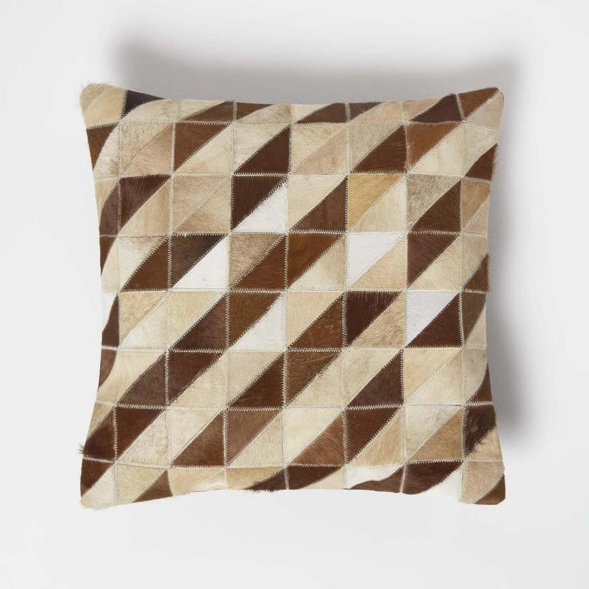 Add colour, style and comfort to your home with Homescapes exclusive collection of leather cushions. Handcrafted from sustainably sourced leather, each cushion is carefully crafted and finished to the highest standards and is backed with a durable suede leather. This extensive collection includes diamond, block check and geometric patterns all finished in a range of neutral tones including cream, grey and brown. Ideal for modern and traditional style interiors, leather accessories introduce an on-trend textured look that will complement bold and neutral settings. Ideal for use on sofas, armchairs and beds, they provide comfort and support whilst also injecting a touch of style into any room. Generously filled with a super microfibre cushion pad, this cushion is ideal for allergy sufferers and will remain thick and plump and will not flatten over time. Featuring a zip closure on the reverse, cushion inserts can be machine-washed and leather cushions can be spot-cleaned when required. Measuring 45 x 45 cm, cushions are the perfect size for styling in pairs or why not mix and match with plain suede or cotton cushions to create the perfect look Part of Homescapes exclusive collection of leather homeware and accessories, co-ordinating rugs and footstools are also available in a range of colours and designs.