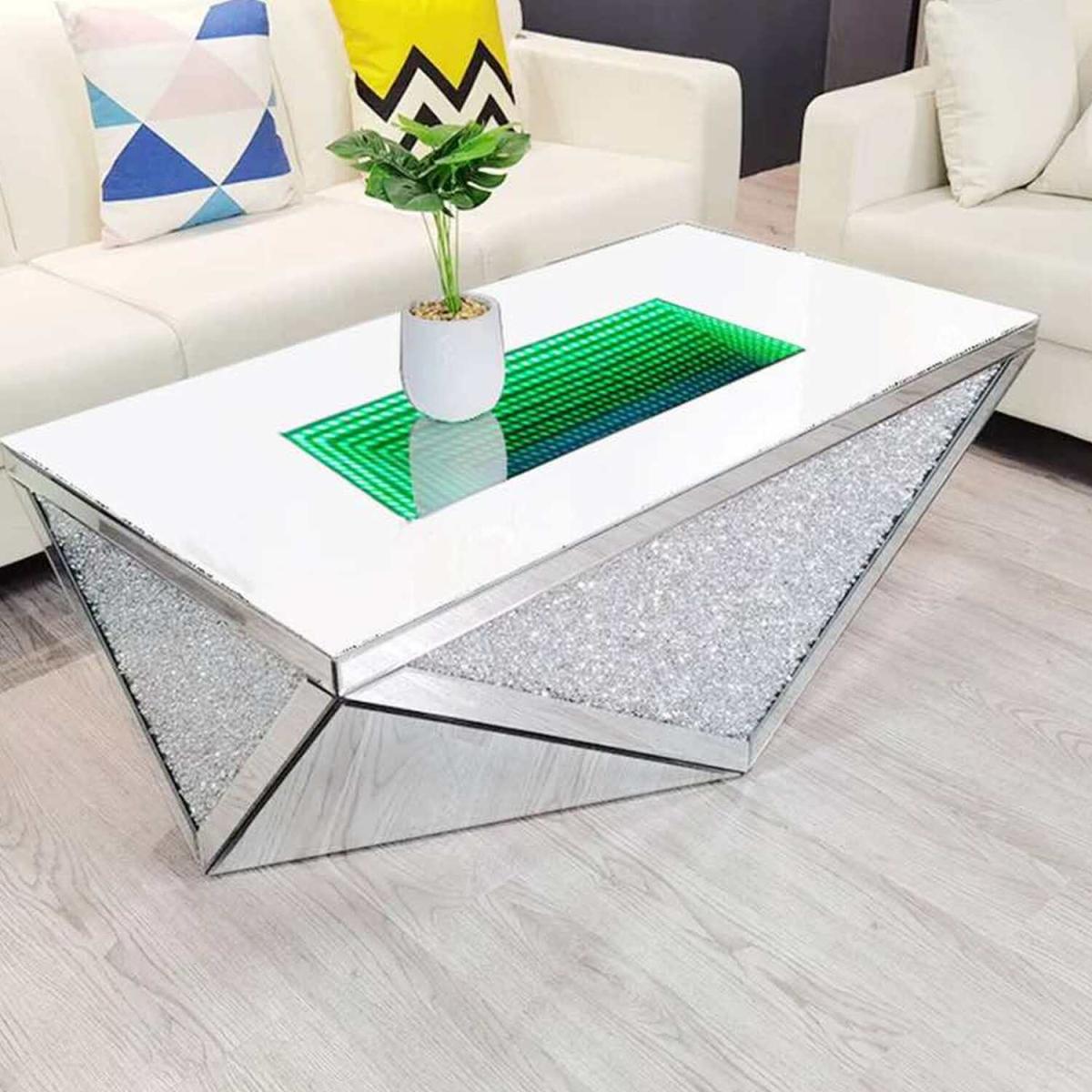 Diamond Crushed Mirror Coffee Table With LED Light - Silver