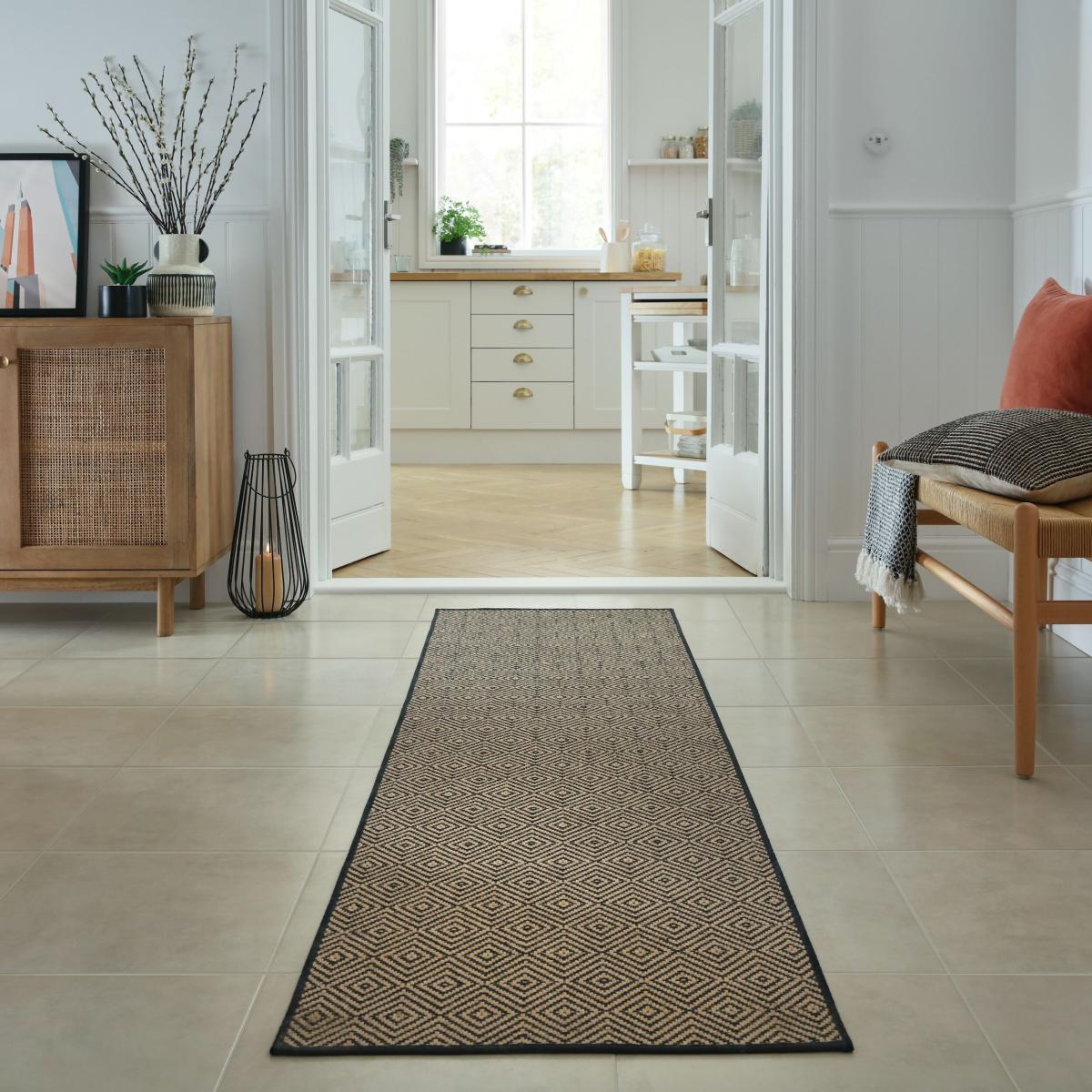 I love the black Jute Border Runner for its versatile and understated design, which makes it a great addition to both contemporary and traditional interiors. Its durable jute material adds a natural, textured element that works well in hallways, kitchens, or even under seating areas. Styling tips include pairing it with neutral-toned furniture and simple accessories to let its subtle diamond pattern stand out, or contrasting with bold coloured accents for a modern look. It’s also practical for high-traffic areas due to its durability, and its slim profile helps to define space without overwhelming the room. Overall, it’s a practical yet stylish choice to add warmth and texture to your home.