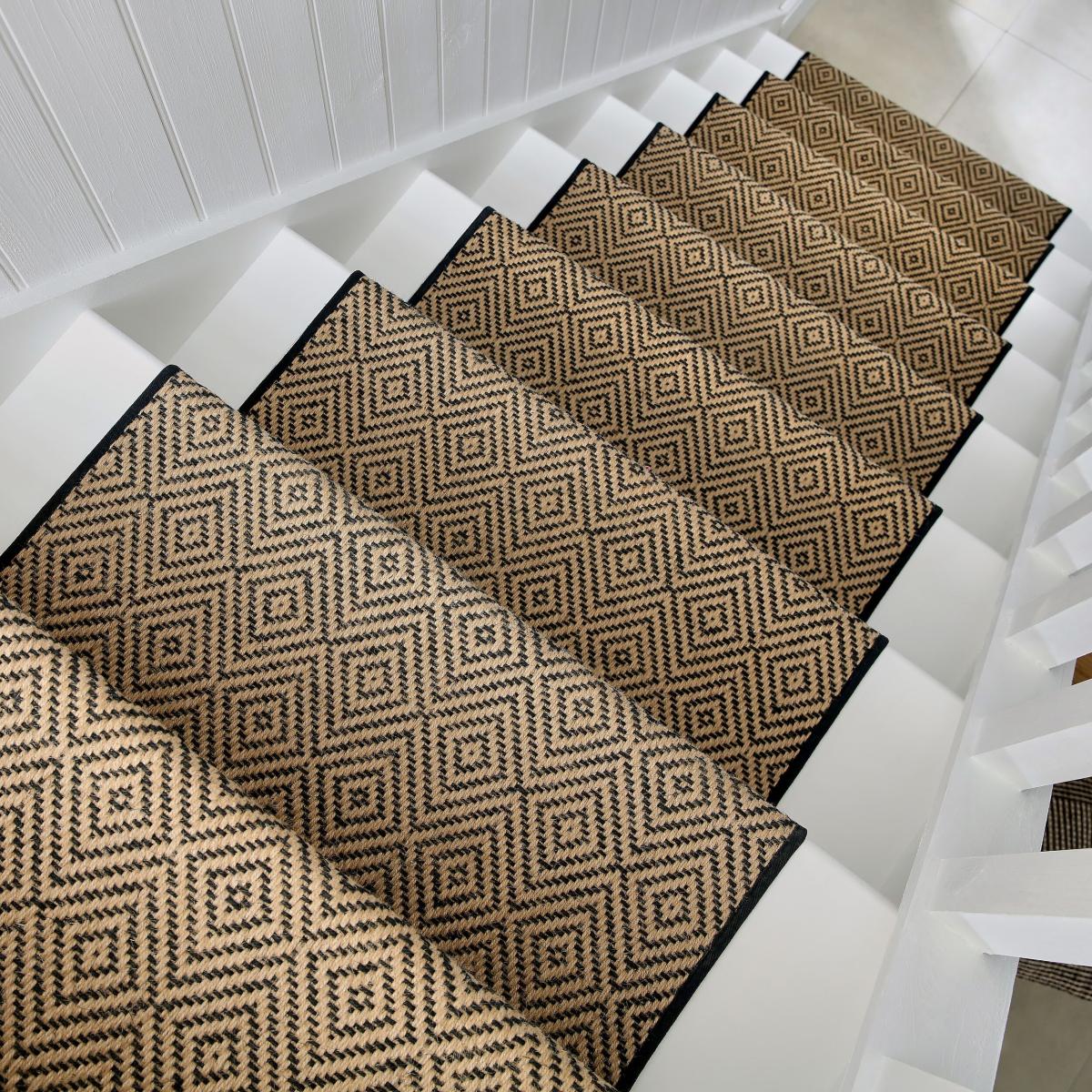 * Made from Jute* Flatweave pile Our Diamond Jute Border Rug has been intricately woven from durable jute, designed to fit high traffic staircases perfectly. Coloured with dyed jute to create a subtle geometric pattern that draws you into the expertly crafted details. This statement piece has been finished with a matching polyester border to give your rug a quality finish that will stand the test of time. Why not continue the look and add the matching runner size to smaller areas within your home. Care: Made from natural fibres. Colour may vary. Shake or vacuum to remove any loose fibres, dirt and debris using a nozzle attachment. In the case of an accidental spillage, blot with a clean and dry cloth. View our 'How to fit a stair runner' guide [here](https://www. dunelm. com/info/buying-guides/how-to-fit-a-stair-runner).