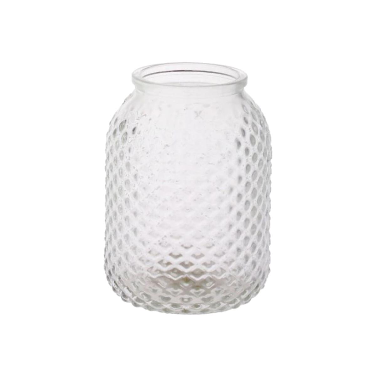 Elegance meets versatility with this Clear Vase. This glass vase, measuring 12cm x 8.5cm, seamlessly transforms into a captivating tealight holder or a stunning centerpiece. Its clear design allows for endless creative possibilities, making it an ideal choice for wedding table decorations and home embellishments. The Vase exudes timeless charm, effortlessly enhancing any setting with its refined simplicity. Whether adorned with flowers or softly glowing with tealights, this exquisite glass vase adds a touch of sophistication to your decor, making it a must-have for those seeking to elevate their aesthetic sensibilities.