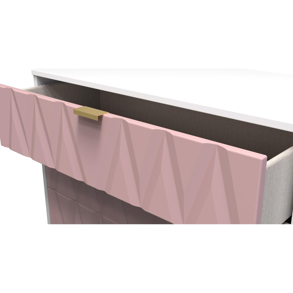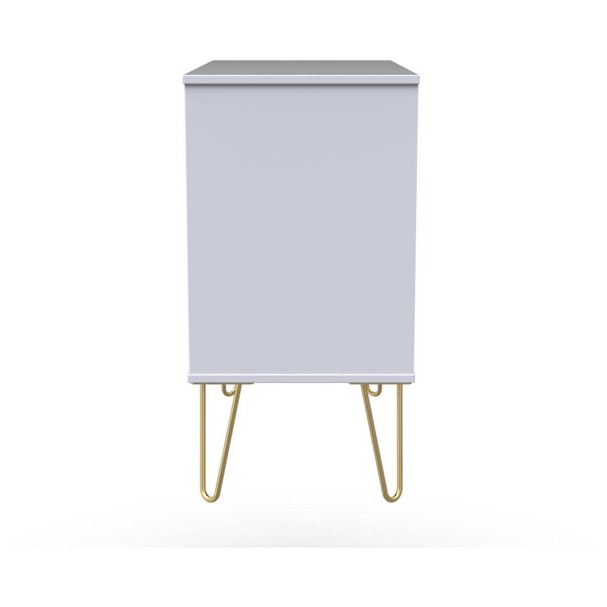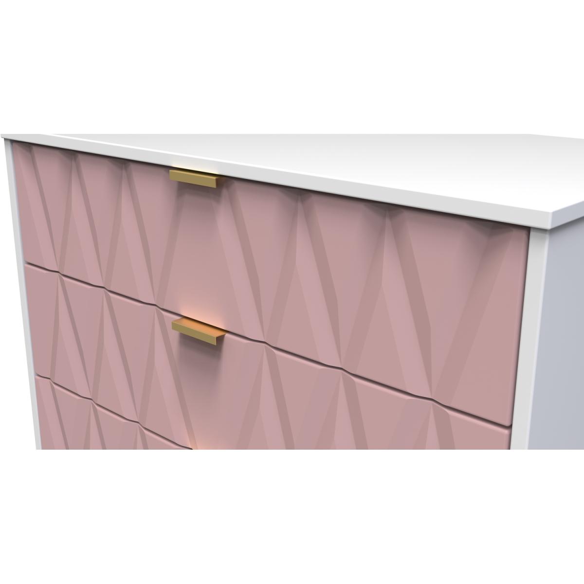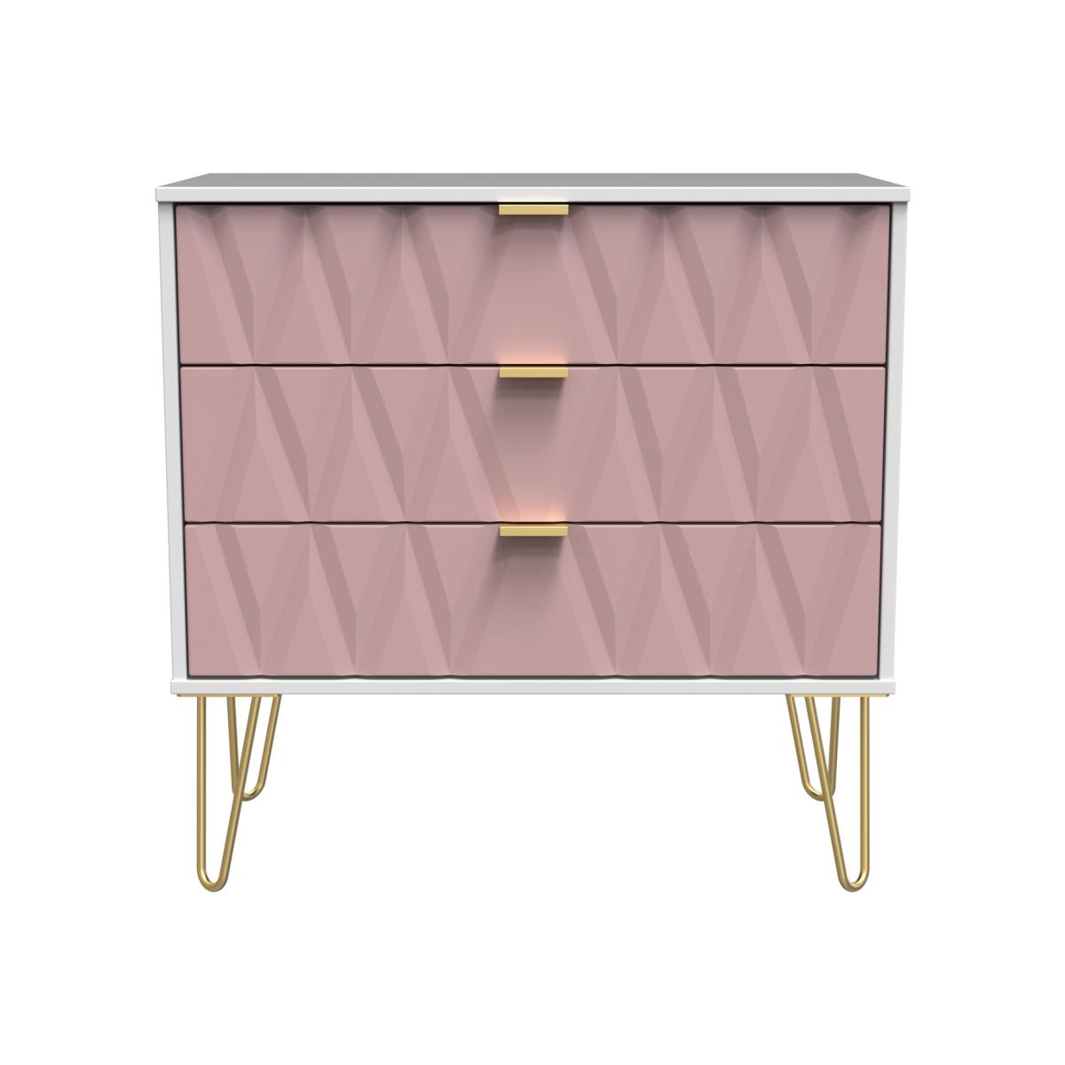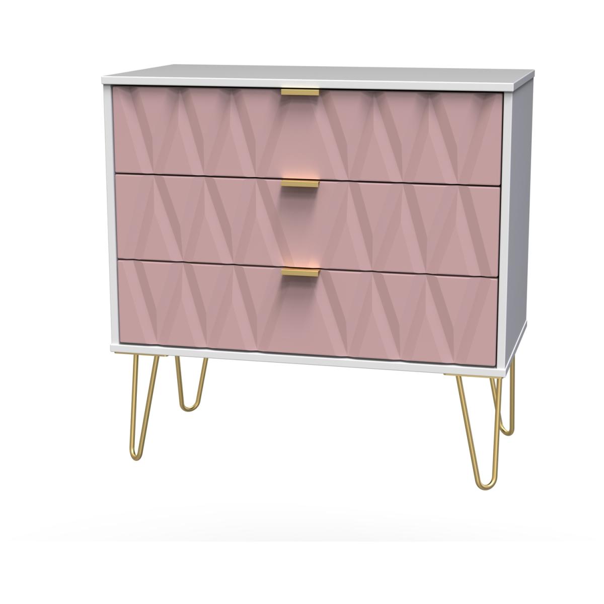 This wide 3 drawer chest of drawers is practical and stylish. Perfect for any home as a free standing storage unit. Say hello to contemporary cool with the Diamond range, with distinctive patterned drawers and a variety of colour options available to compliment any interior design. Gold metal handles and sturdy hairpin legs complete the storage solution. All our furniture is made in the United Kingdom, to the highest quality. It is delivered direct to your location of choice by one of our two man delivery teams, and come full assembled (although legs may be removed to prevent damage in transit).