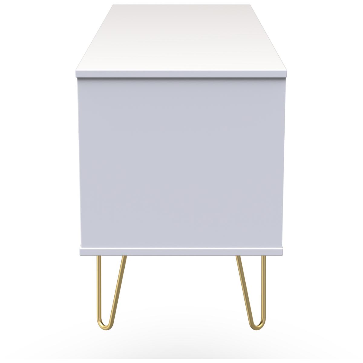 A large 4 drawer bed box. A Perfect storage solution for any room (not just the end of your bed). Could also be used as a low level TVMedia stand. Say hello to contemporary cool with the Diamond range, with distinctive patterned drawers and a variety of colour options available to compliment any interior design. Gold metal handles and sturdy hairpin legs complete the storage solution. All our furniture is made in the United Kingdom, to the highest quality. It is delivered direct to your location of choice by one of our two man delivery teams, and come full assembled (although legs may be removed to prevent damage in transit).