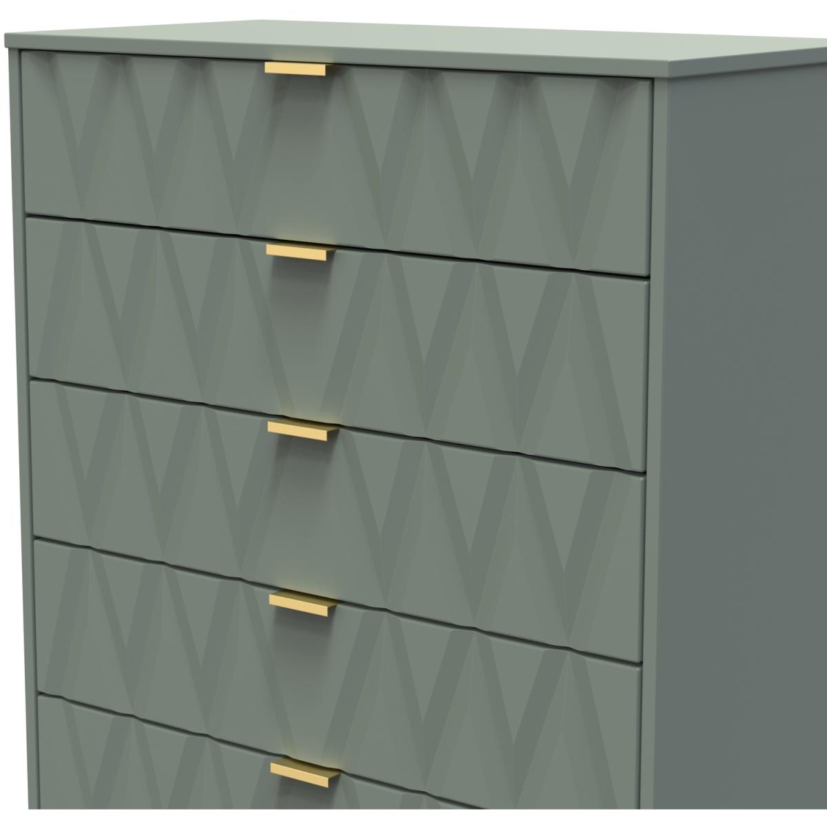This wide 5 drawer chest of drawers is practical and stylish. Perfect for any home as a free standing storage unit. Say hello to contemporary cool with the Diamond range, with distinctive patterned drawers and a variety of colour options available to compliment any interior design. Gold metal handles and sturdy hairpin legs complete the storage solution. All our furniture is made in the United Kingdom, to the highest quality. It is delivered direct to your location of choice by one of our two man delivery teams, and comes fully assembled (although legs may be removed to prevent damage in transit).