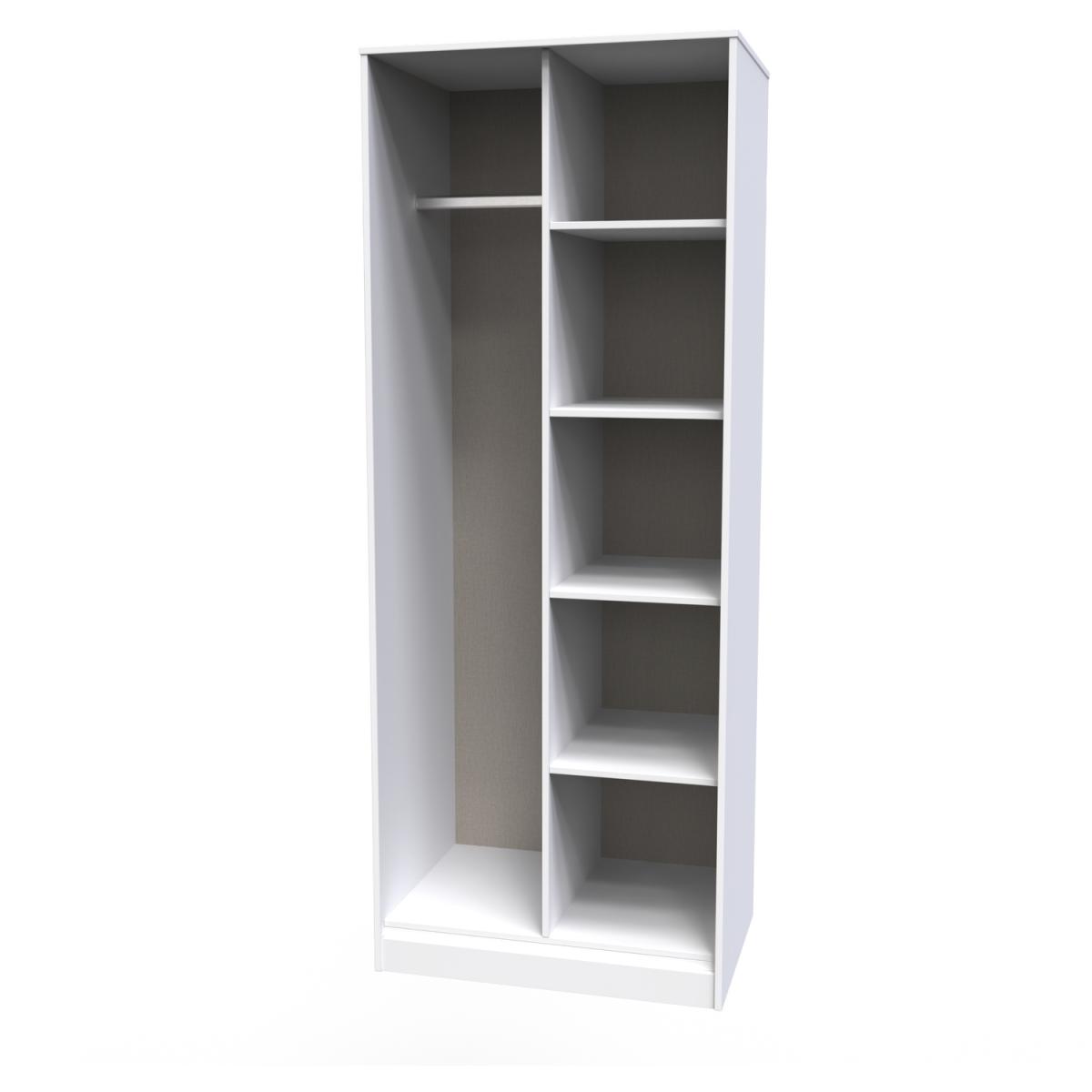 This full height open wardrobe features 5 storage shelves and a full height clothes hanging compartment. Say hello to contemporary cool with the Diamond range, with distinctive patterned drawers and a variety of colour options available to compliment any interior design. Gold metal handles and sturdy hairpin legs complete the storage solution. All our furniture is made in the United Kingdom, to the highest quality. It is delivered direct to your location of choice by one of our two man delivery teams, and come full assembled (although legs may be removed to prevent damage in transit).