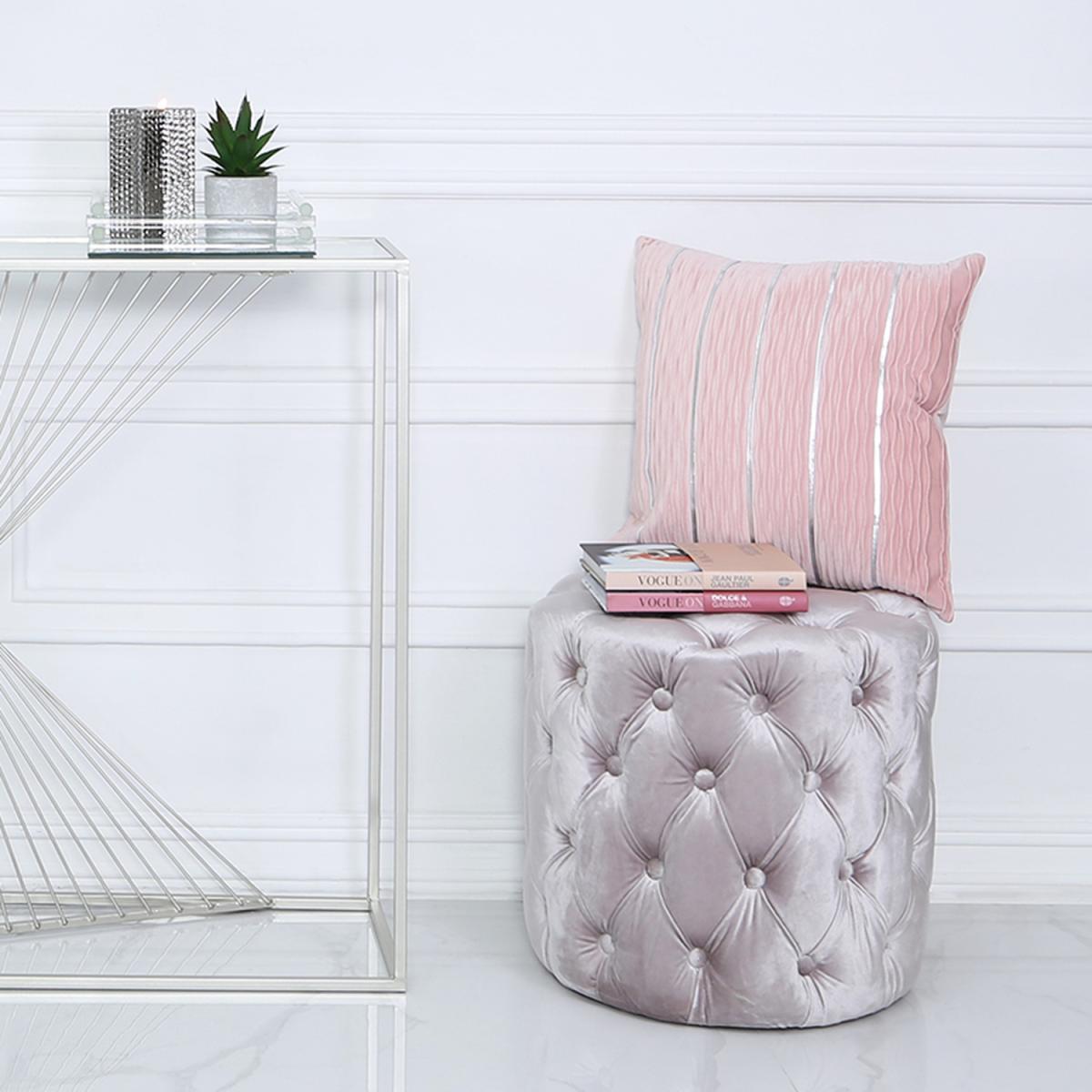 I love this pink tufted stool for bringing a soft, playful touch to a variety of interiors. Its rounded shape and plush upholstery make it a great accessory in cosy living rooms, bedrooms, or dressing areas. It works particularly well in feminine, vintage, or contemporary spaces that could benefit from a splash of colour and texture. Practical styling tips include using it as a footrest, additional seating for guests, or even as a side table paired with a tray. To keep it looking fresh, consider placing it near neutral or pastel palettes to enhance its delicate hue, and it can also be topped with a decorative tray or cushion for versatility.