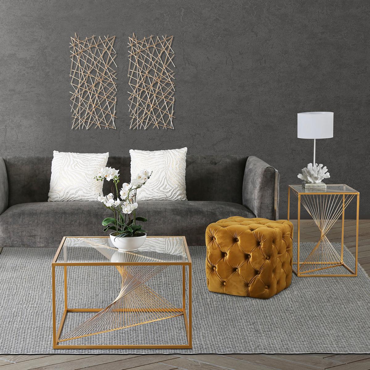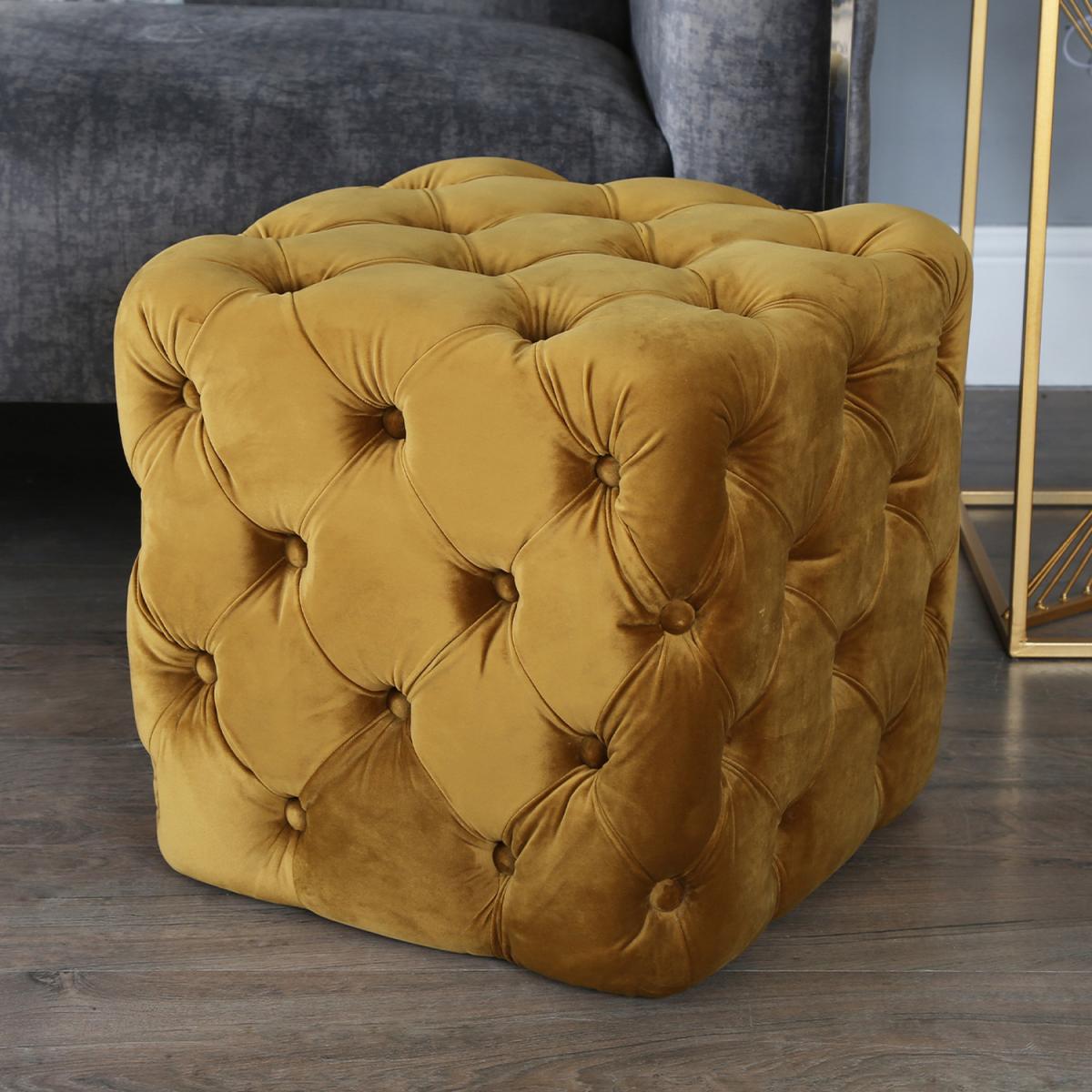 Diana Tufted Square Stool - Mustard