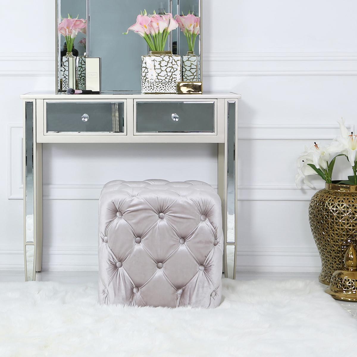 Diana Tufted Square Stool - Pink