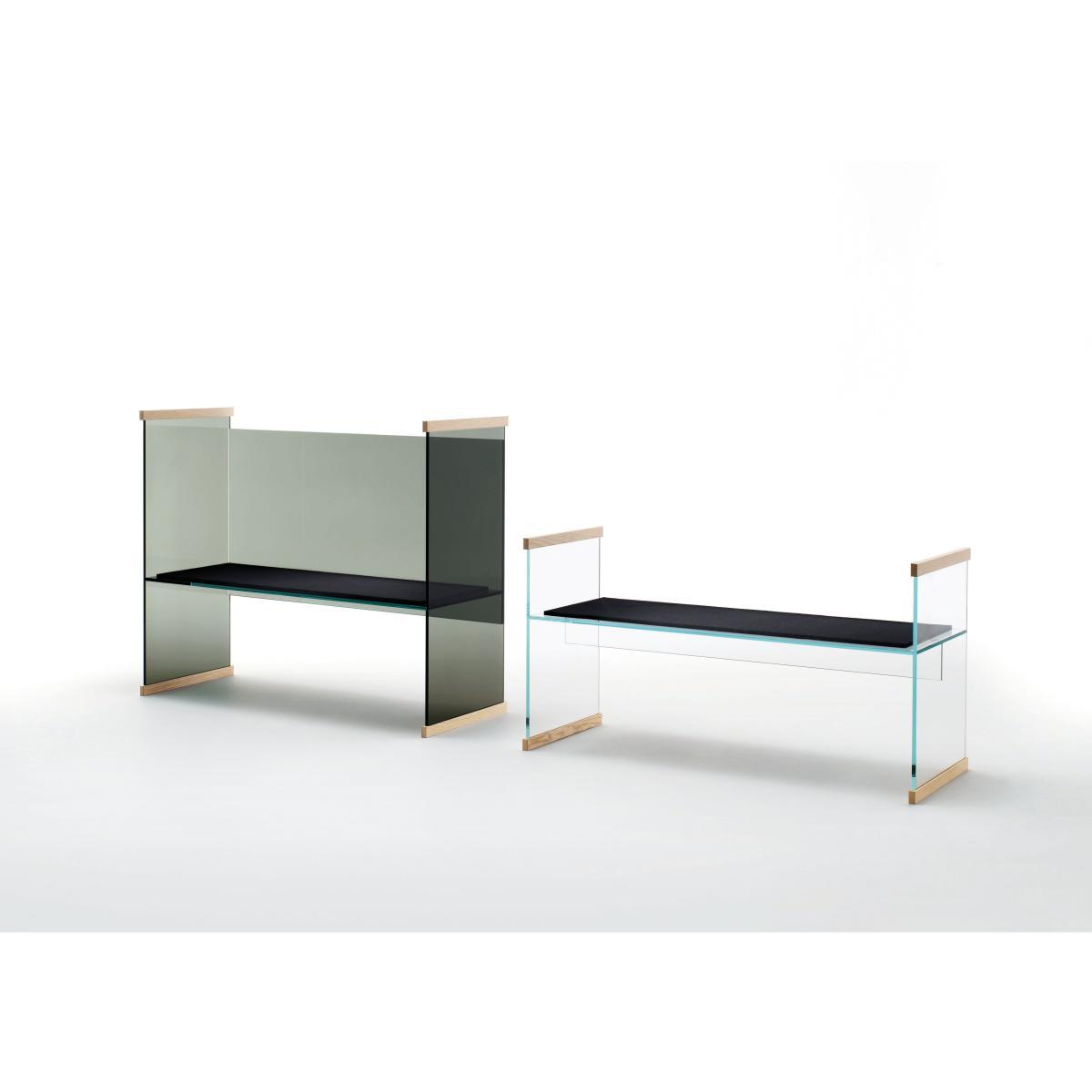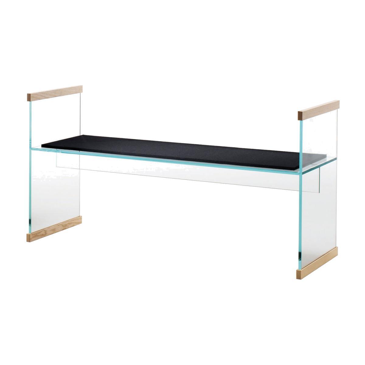 I love this glass bench for its sleek, contemporary aesthetic and versatility. It works particularly well in modern and minimalist interiors where it can serve as a subtle statement piece or functional seating. Its transparent design adds visual lightness, making small spaces feel less cluttered. Practical styling tips include pairing it with cushions or a throw for added comfort, or using it as a chic surface to display art, plants, or decorative items. Its clean lines and transparency make it adaptable across various settings - from entryways to living areas - lending an understated sophistication without overpowering the space.