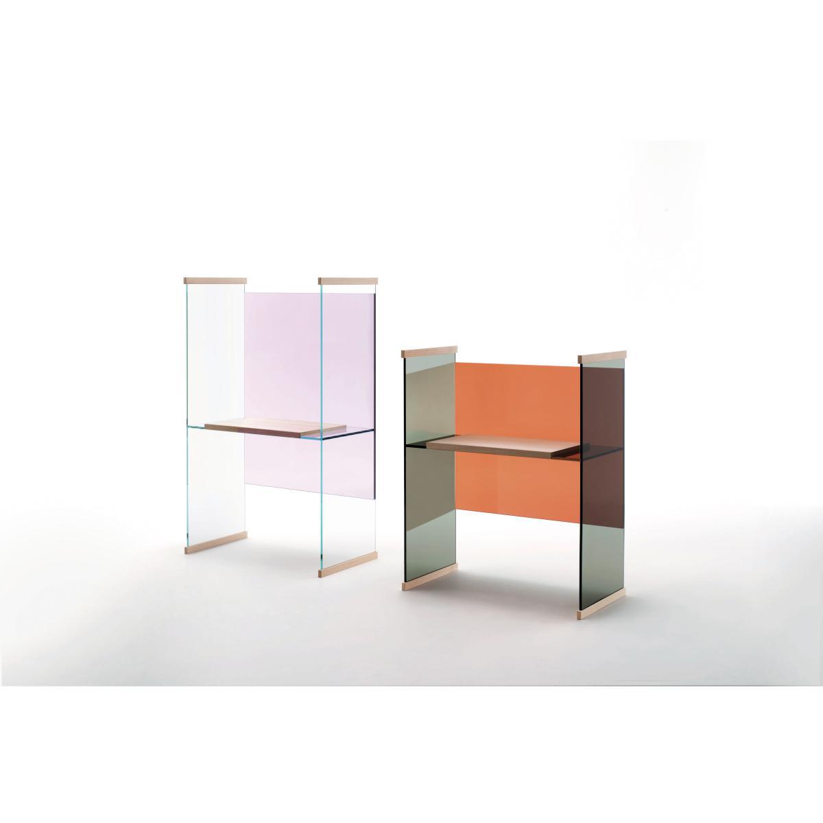 For this first collaboration with Glas Italia, Ronan et Erwan Bouroullec made a collection of glued (thermo-welded) glass to which we associate elements of wood and felt. Diapositive consists of an assembly system of simple glass panels in which the edges are protected with pieces of wood, getting away from the impression of fragility.