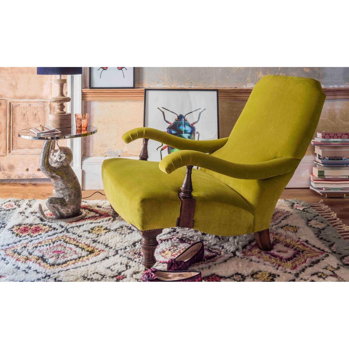 A contemporary twist on the traditional steamer chair, this distinctive design has a reclining back, sprung seat, turned wooden details. The Dicky is made to order in an array of fabrics and colours. Handmade in 8-12 weeks and then delivered usually within 10 working days.