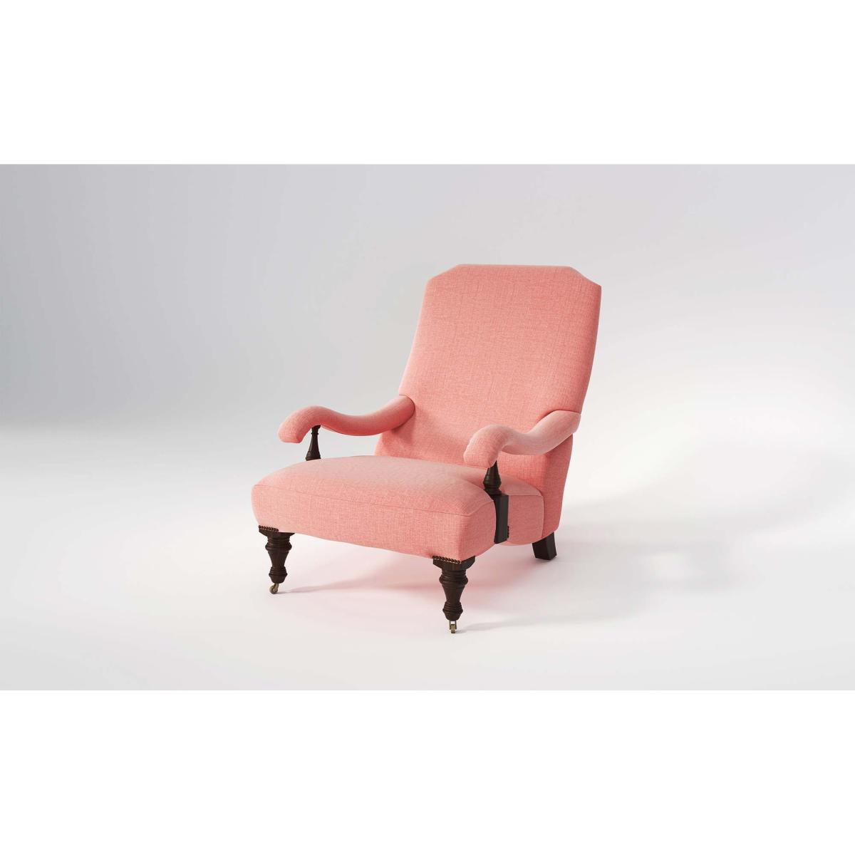 A contemporary twist on the traditional steamer chair, this distinctive design has a reclining back, sprung seat, turned wooden details. The Dicky is made to order in an array of fabrics and colours. Handmade in 8-12 weeks and then delivered usually within 10 working days.