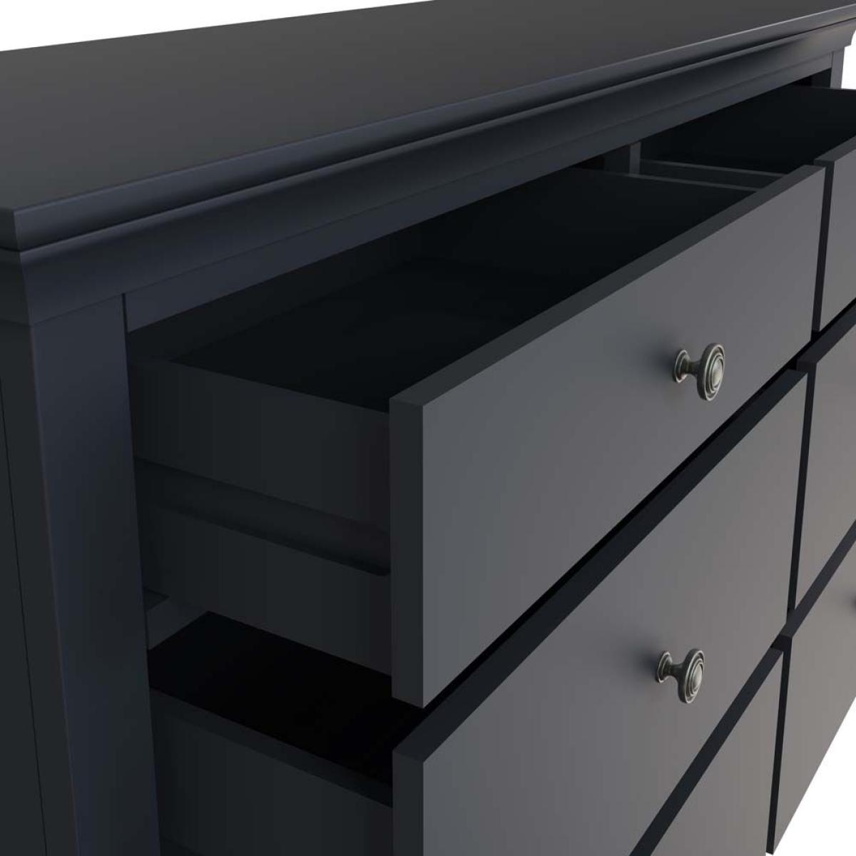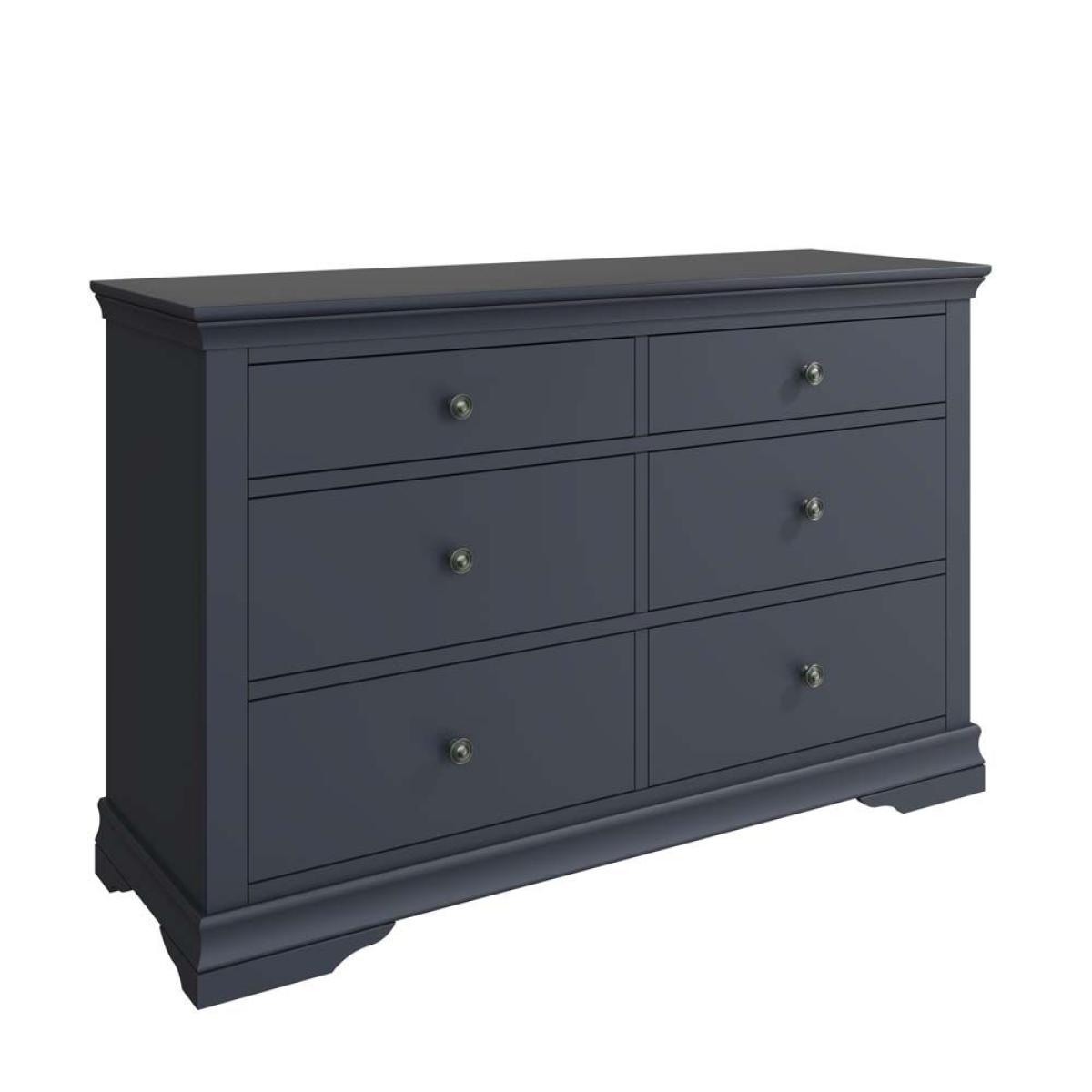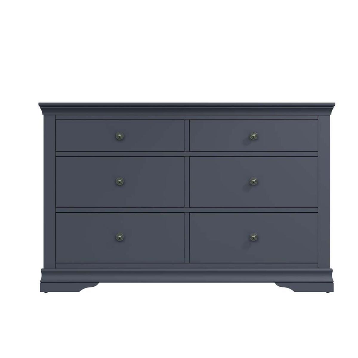 The Didcot 6 drawer chest is the most sizeable chest of drawers in the Didcot range. Featuring a large smooth surface, and 6 drawers (two shallow drawers at the top and four larger deeper drawers below). Each drawer is fronted by antiqued brass knobs and the signature wood design features around the top and base of the wardrobe which the Didcot ranges are famous for.