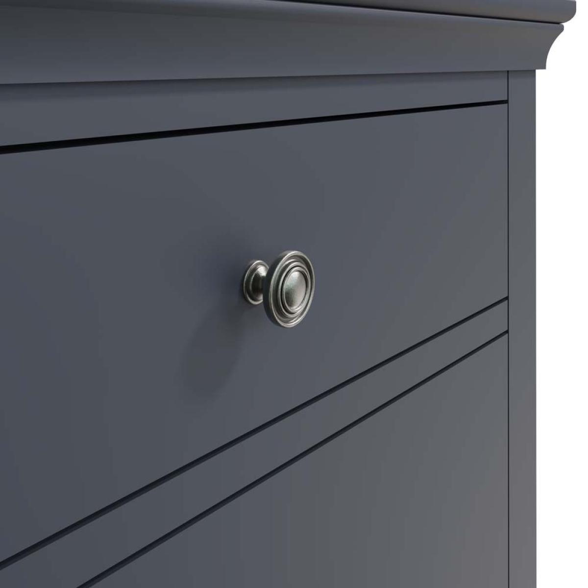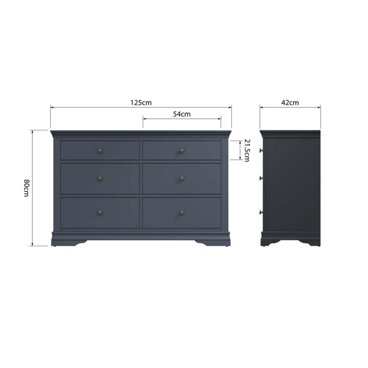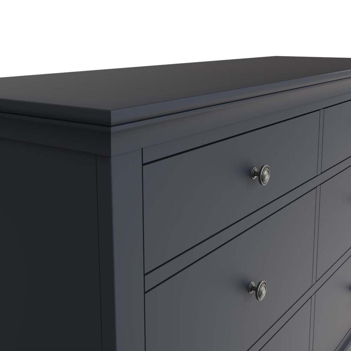 The Didcot 6 drawer chest is the most sizeable chest of drawers in the Didcot range. Featuring a large smooth surface, and 6 drawers (two shallow drawers at the top and four larger deeper drawers below). Each drawer is fronted by antiqued brass knobs and the signature wood design features around the top and base of the wardrobe which the Didcot ranges are famous for.