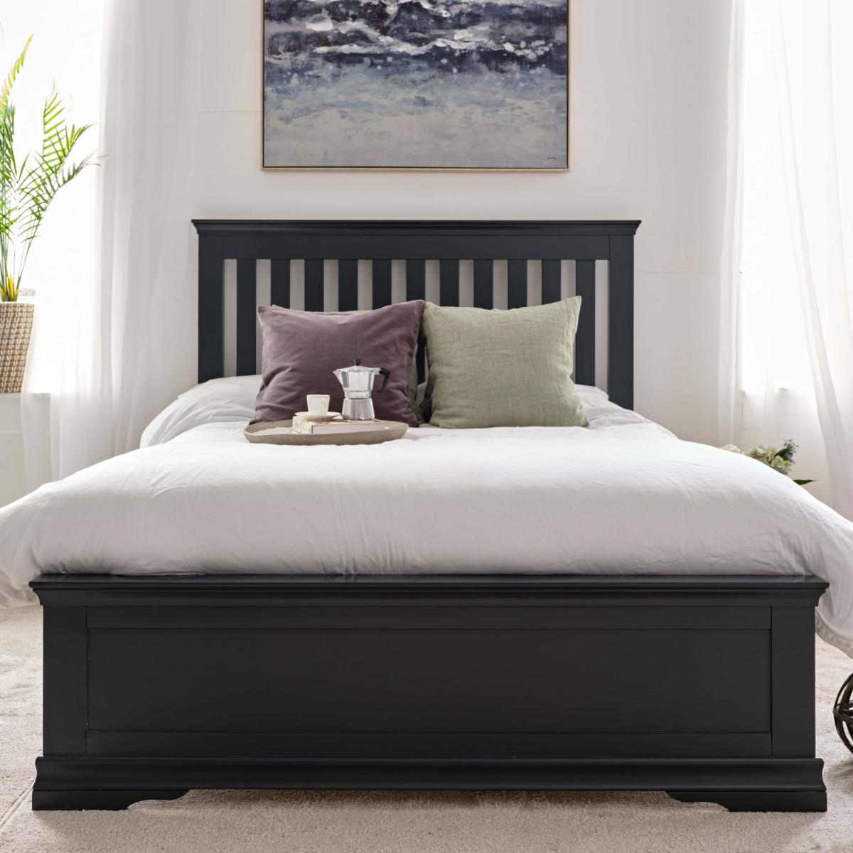 The Didcot Bedframe is a georgous indulgent design with a timeless simplicty that gives the bed a versatile design. The bed has a traditional slatted headboard with beaded top rail, and comes complete with a slatted base. The deep blue paintwork has a smooth finish and gives this otherwise traditional design a modern twist. Availble in both Double and King Size.