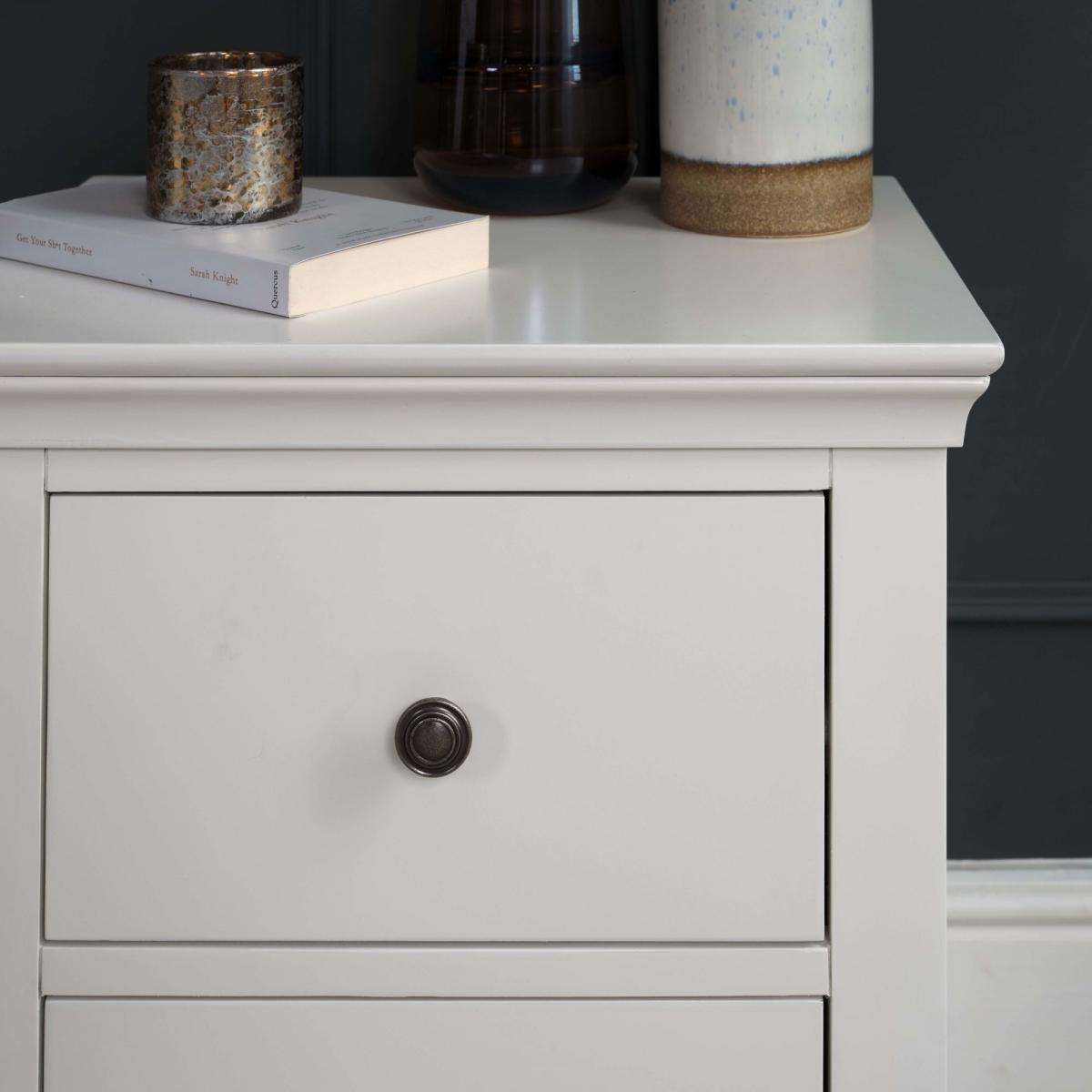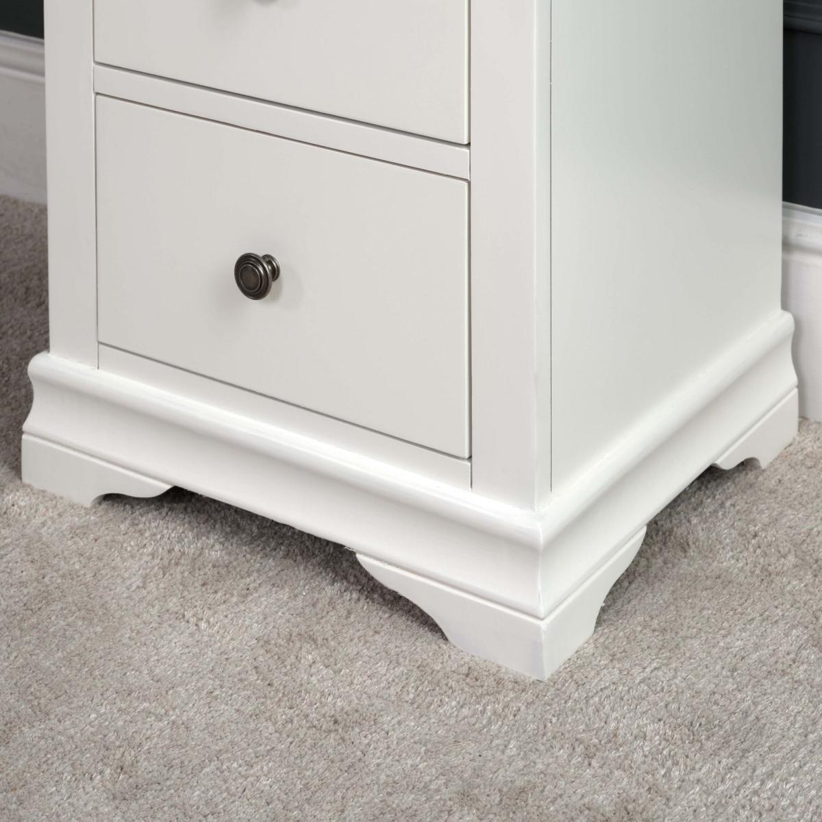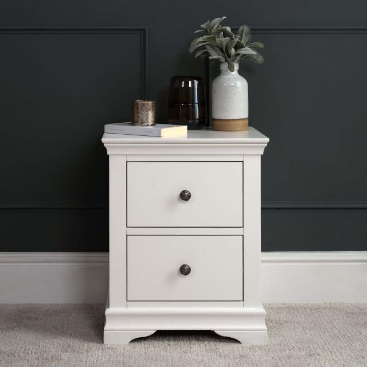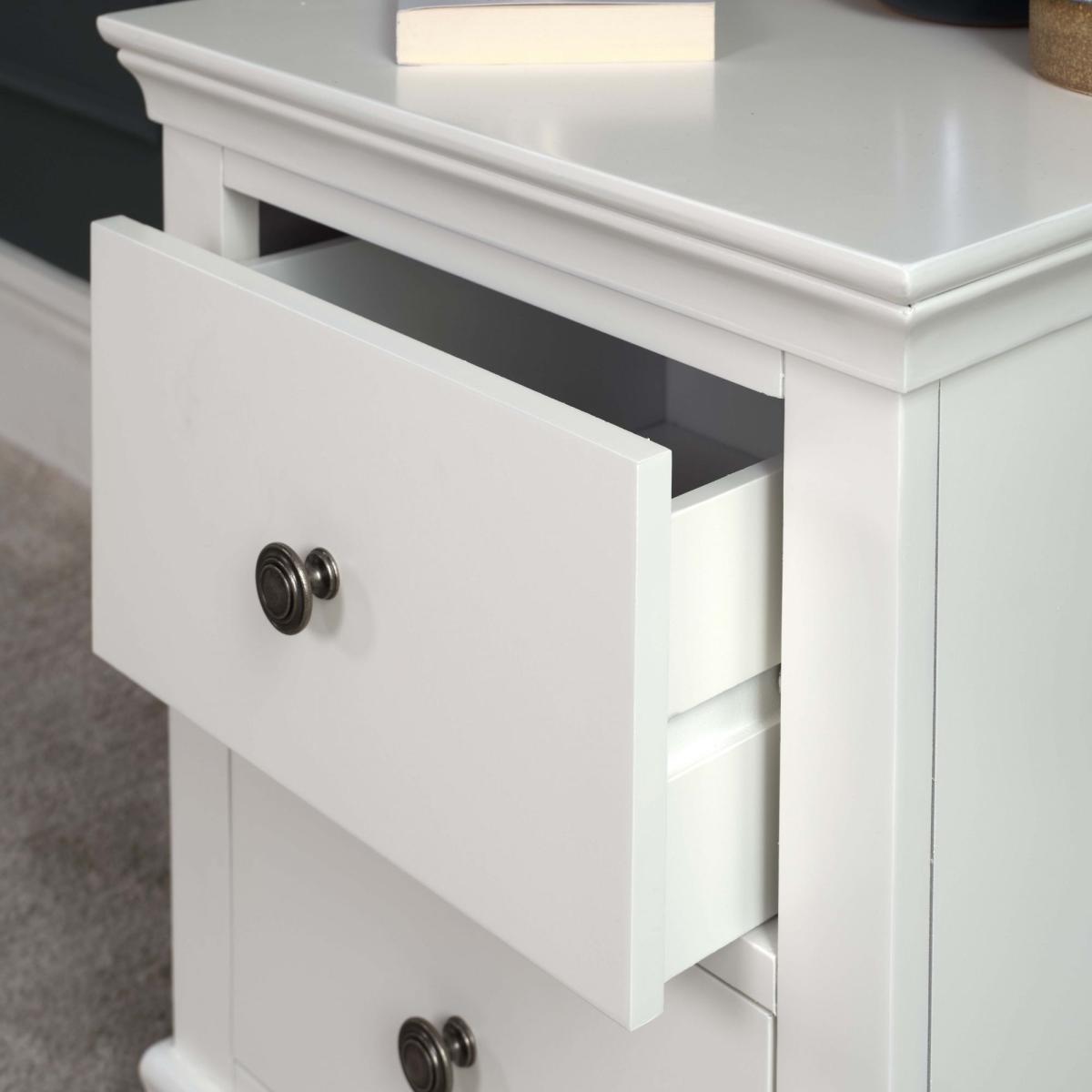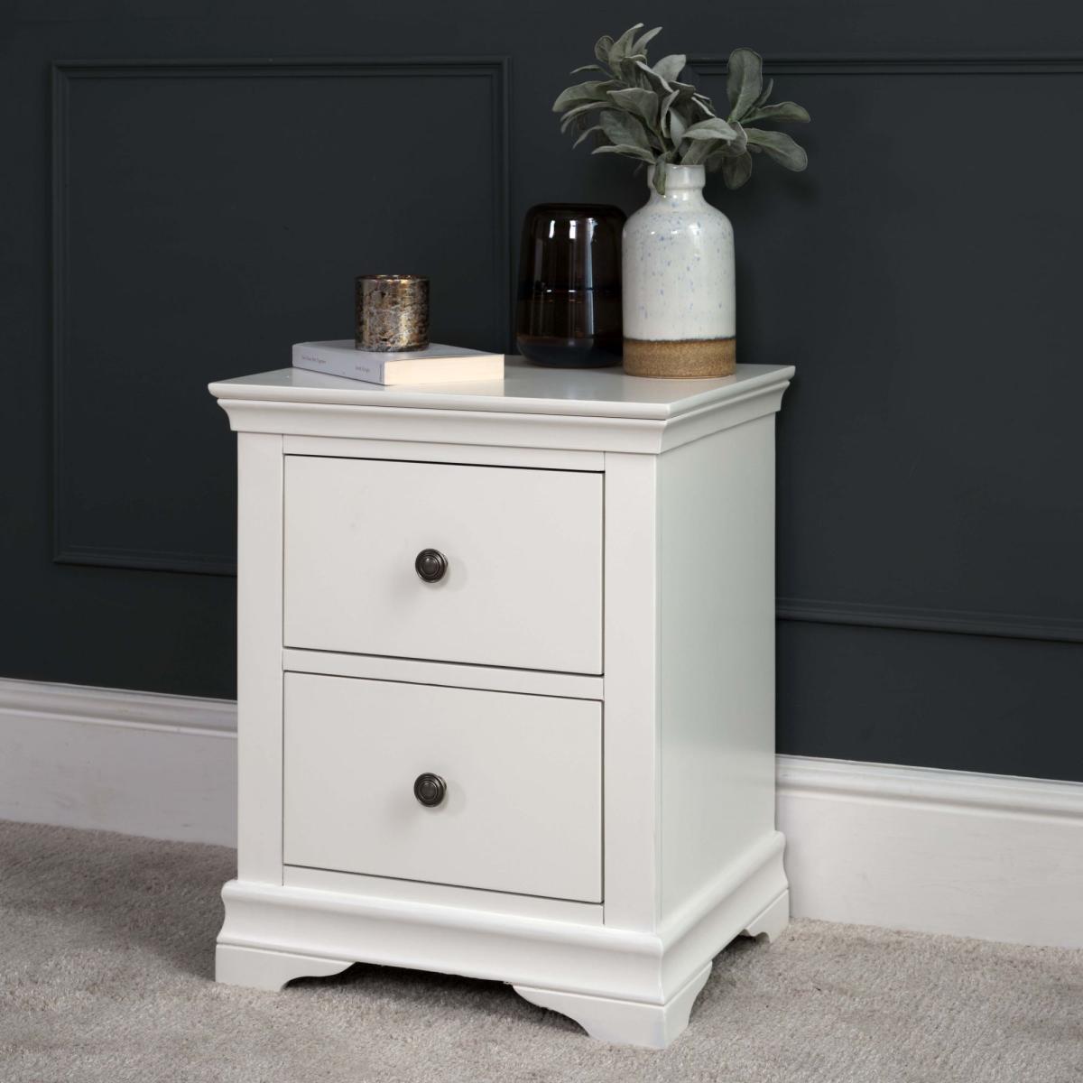 Beautifully painted in classic white, the Didcot large white bedside cabinet is a timeless piece of bedroom furniture. This white bedside cabinet features 2 drawers with dark contrasting handles, it will look truly stylish in any bedroom. The Didcot large white bedside drawers will provide you with enough drawer space to store away your book, and reading glasses as well as a space on top to place a bedside lamp. Team these white bedside drawers with the rest of the Didcot white wood bedroom furniture collection to complete the look. Dimensions 48cm x 40cm x 60cm. Simple self assembly