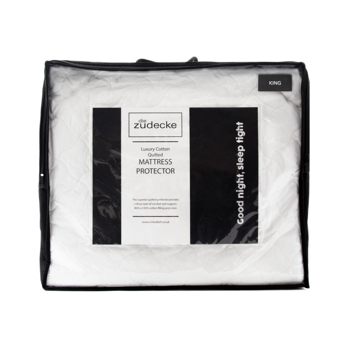 Mattress protectors help to prolong the life of your mattress. Our Die Zudeceke Luxury Cotton Quilted Mattress Protector provides superb support and comfort. Featuring 100% Cotton filling and a 100% Cotton case with an elasticated skirt. All our mattress protectors can be washed at 40 in your washing machine at home and are great for children's beds and allergy sufferers.