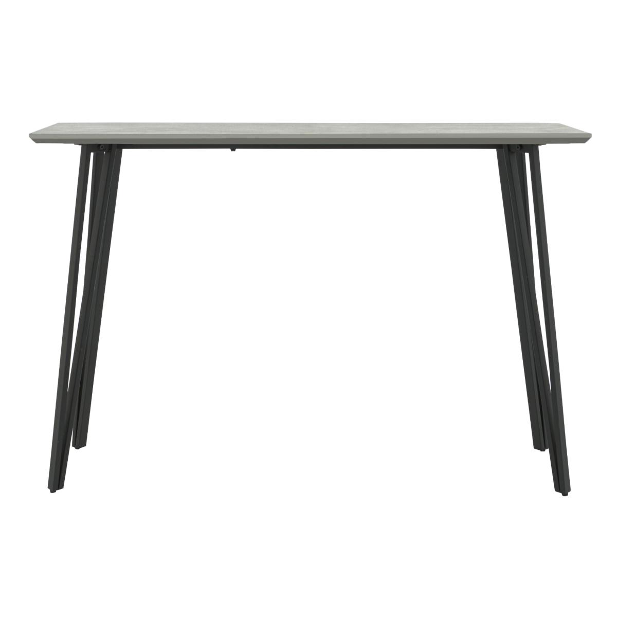 With its concrete- effect table top, black metal legs and overall industrial- cool aesthetic, the great- value Diego bar table makes casual kitchen dining simply more stylish. Why you'll love it Cool industrial style at a great- value price. Ideal for a more compact dining space. Very stylish and hardwearing concrete- effect top in grey. Slanted edges in a contrasting matt grey finish. Slim hairpin legs made of black powder- coated steel. Only available online. This bar table is part of our Diego range. What you need to know Seats 4. The concrete- effect table top will display variations and unique markings. While hardwearing, this finish is not completely heat resistant. Please use coasters and placemats at all times.