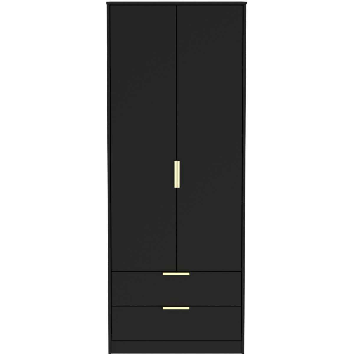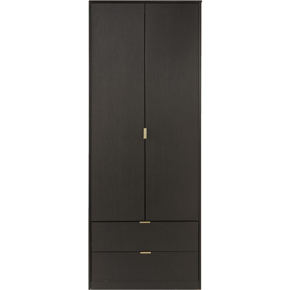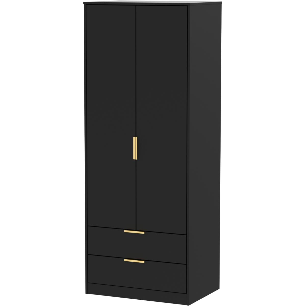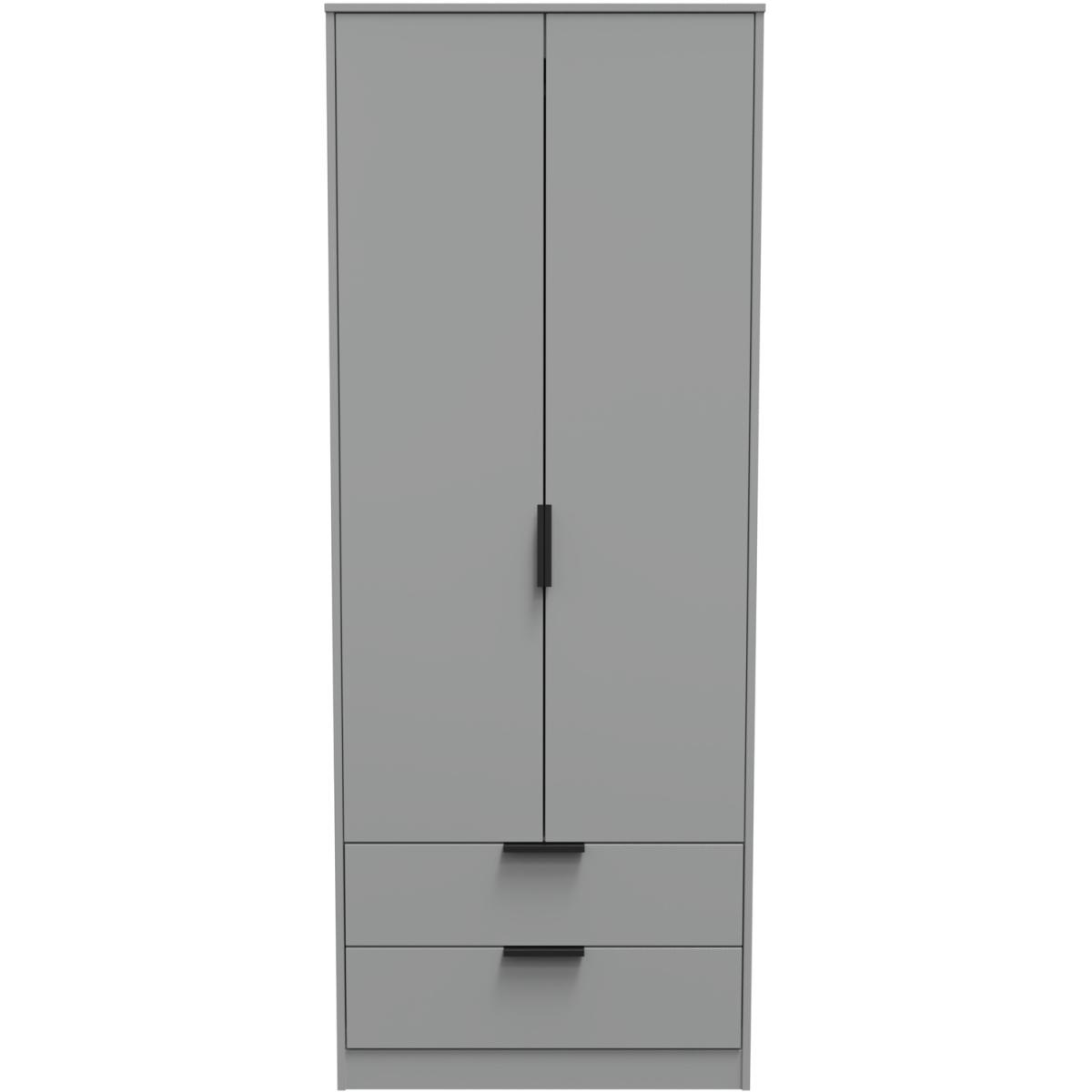 This tall double door wardrobe is perfect for any bedroom. Features the added practicality of 2 full width drawers. This furniture set is popular for its Scandinavian style and industrial feel. Constructed from sturdy materials with metal handles and frame legs. Elevate your space with this range, featuring plenty of storage, so it incredibly practical for keeping rooms clutter free and tidy. All our furniture is made in the United Kingdom, to the highest quality. It is delivered direct to your location of choice by one of our two man delivery teams, and come full assembled (although legs may be removed to prevent damage in transit).