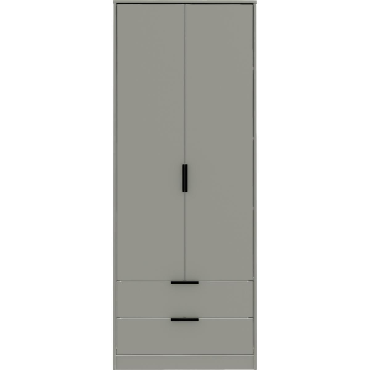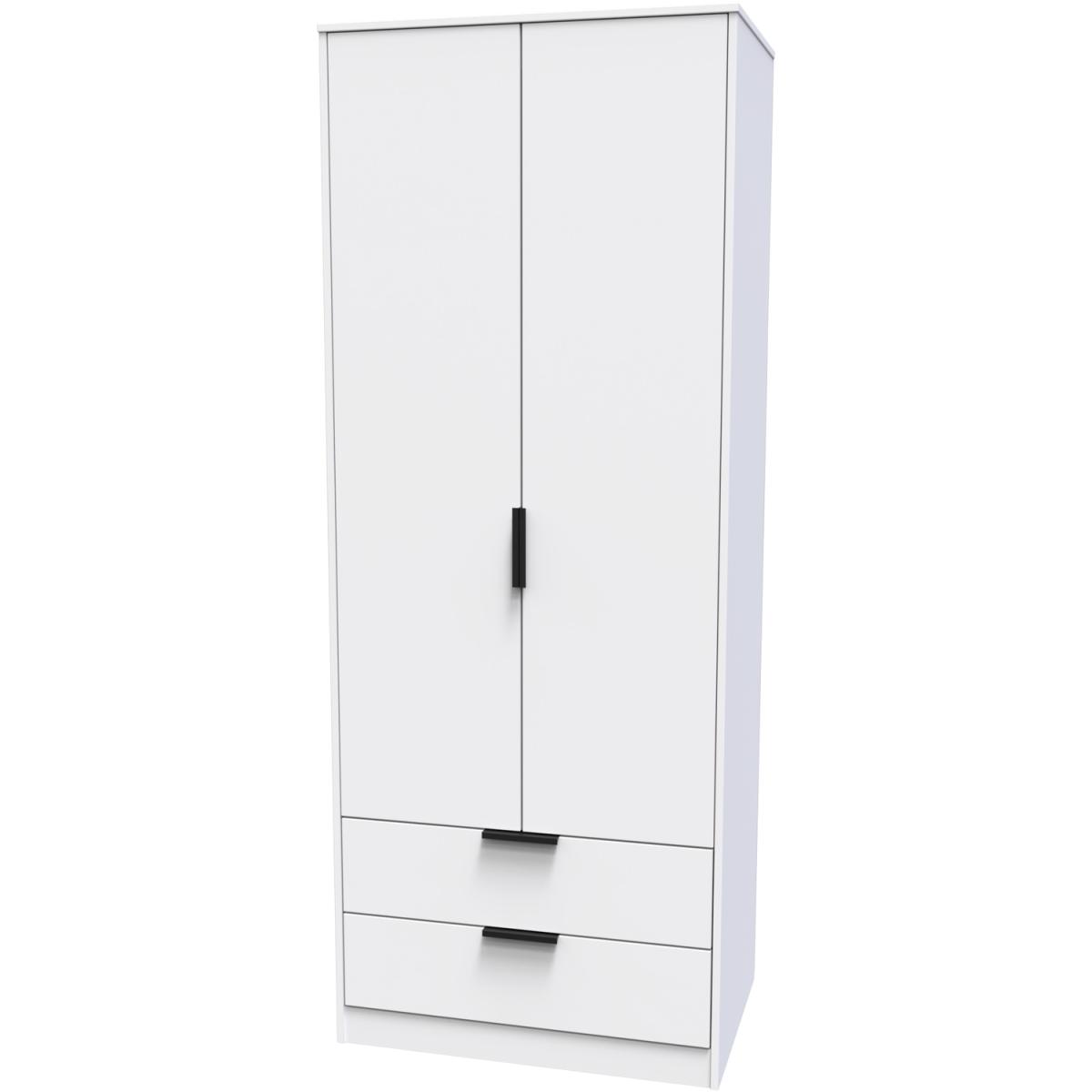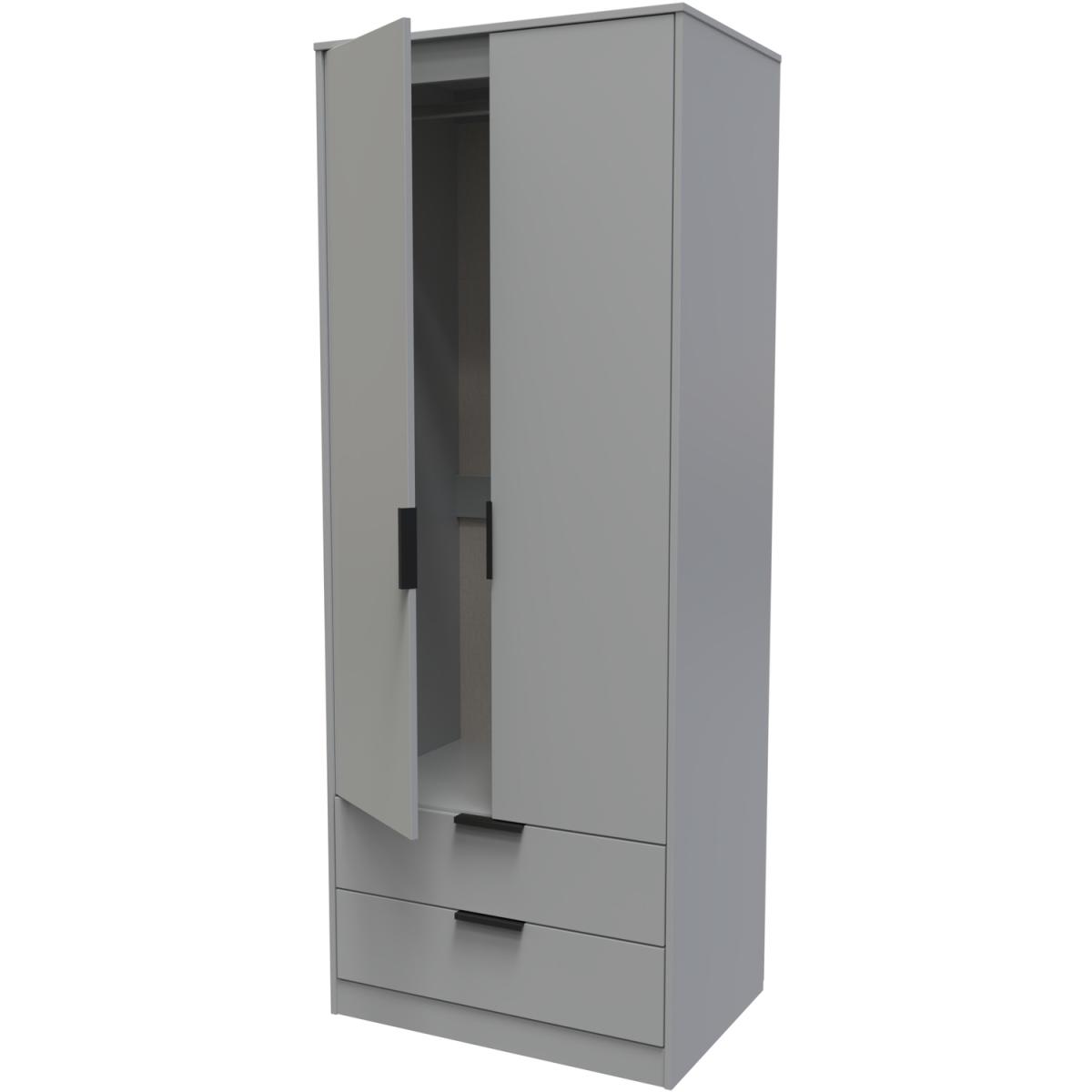 This tall double door wardrobe is perfect for any bedroom. Features the added practicality of 2 full width drawers. This furniture set is popular for its Scandinavian style and industrial feel. Constructed from sturdy materials with metal handles and frame legs. Elevate your space with this range, featuring plenty of storage, so it incredibly practical for keeping rooms clutter free and tidy. All our furniture is made in the United Kingdom, to the highest quality. It is delivered direct to your location of choice by one of our two man delivery teams, and come full assembled (although legs may be removed to prevent damage in transit).