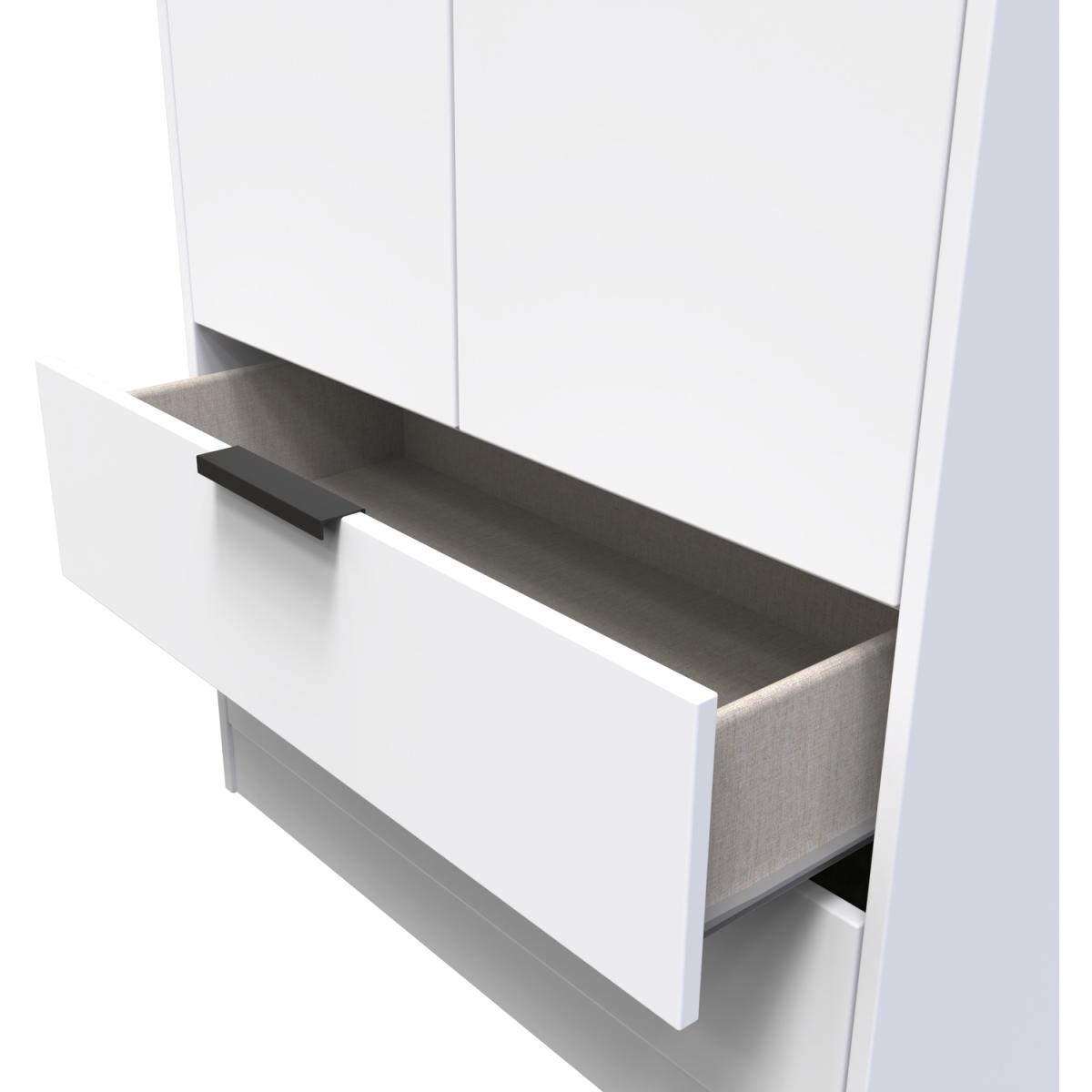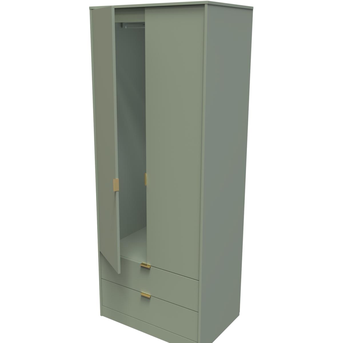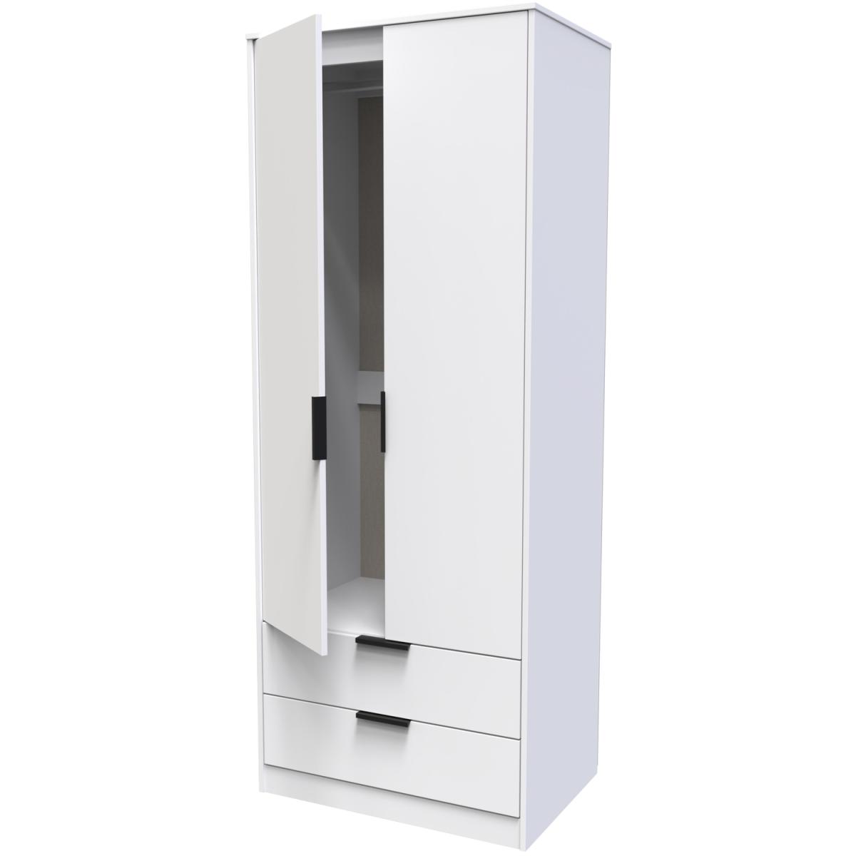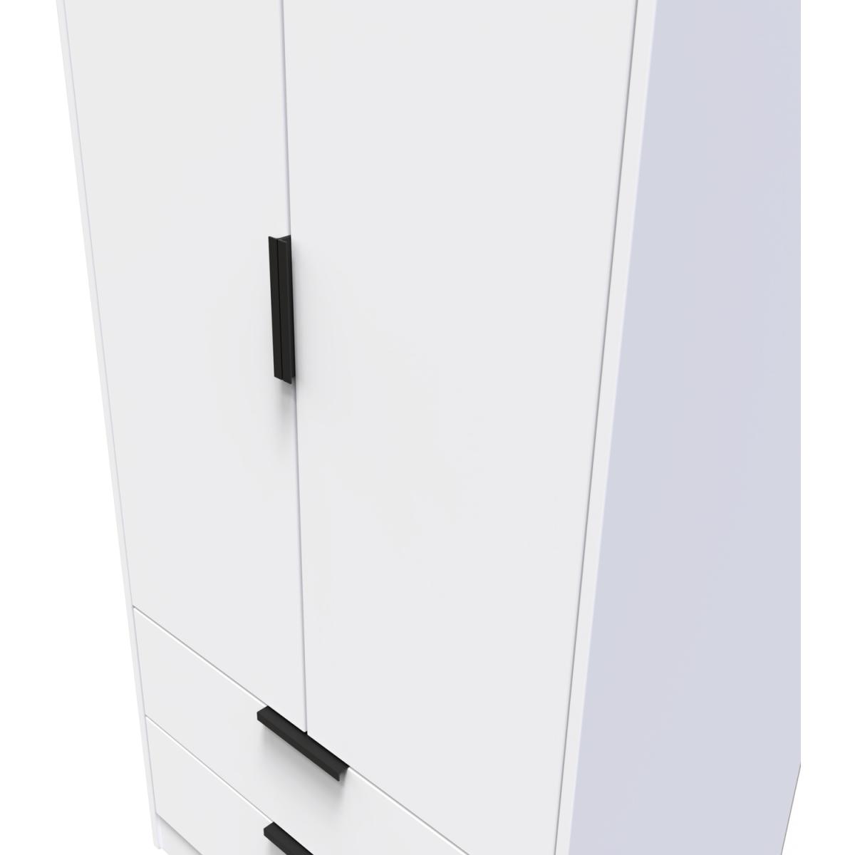 This tall double door wardrobe is perfect for any bedroom. Features the added practicality of 2 full width drawers. This furniture set is popular for its Scandinavian style and industrial feel. Constructed from sturdy materials with metal handles and frame legs. Elevate your space with this range, featuring plenty of storage, so it incredibly practical for keeping rooms clutter free and tidy. All our furniture is made in the United Kingdom, to the highest quality. It is delivered direct to your location of choice by one of our two man delivery teams, and come full assembled (although legs may be removed to prevent damage in transit).