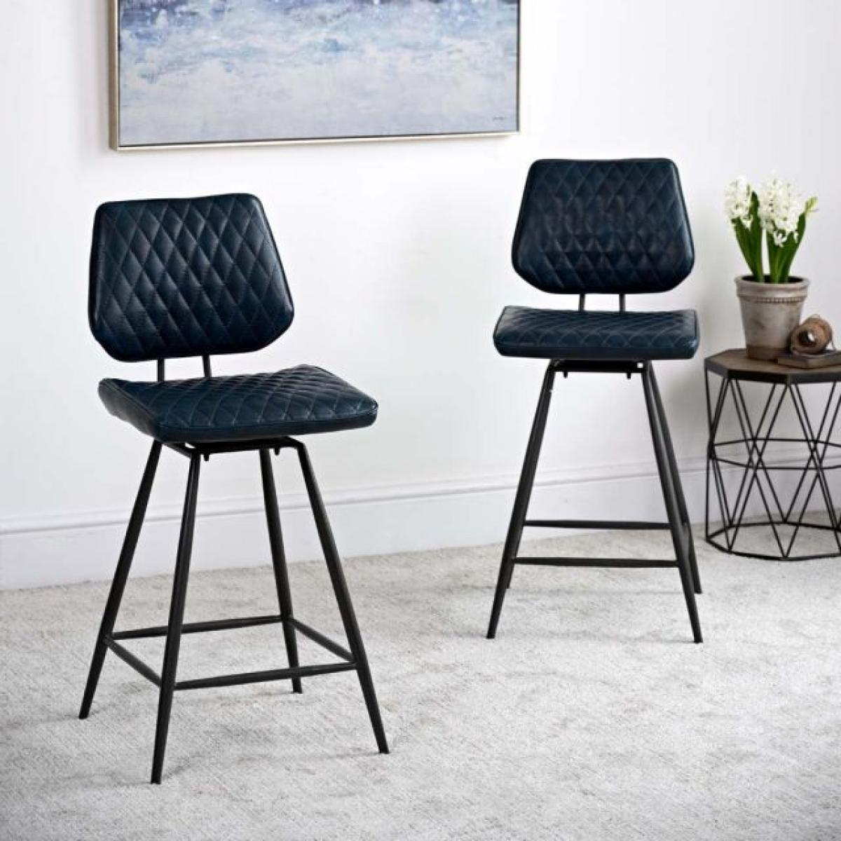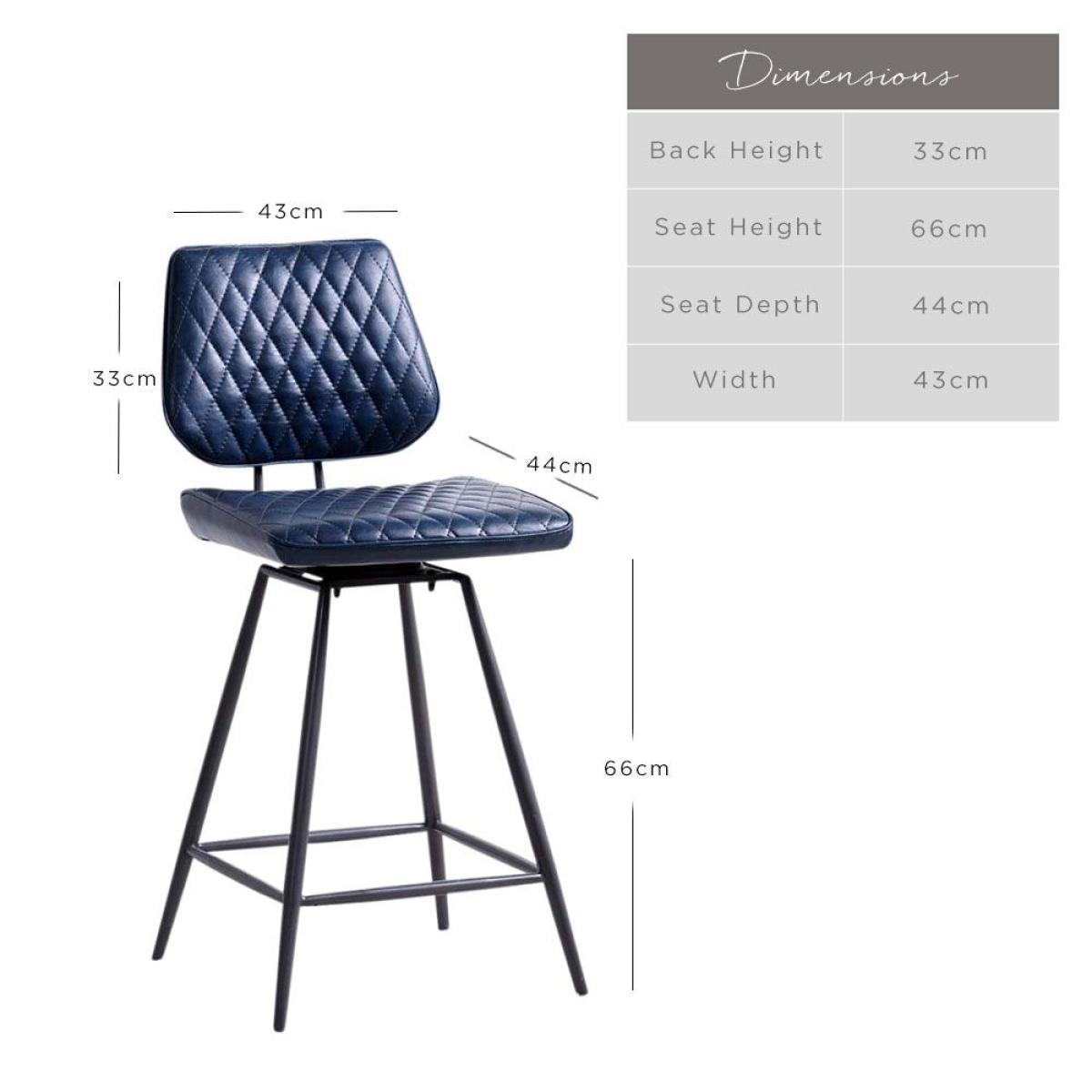 Add some vintage inspired, retro tones into your home with the Digby bar stool. Its angled metal legs keeps it from going out of style whilst its quilted upholstered seat adds a sophisticated touch, perfect for use at a breakfast bar or in your entertainment room. The stool includes a twist function to allow you to turn in your chair with ease. Also available in Dark Brown, Tan and Grey. Dimensions: W40cm x D53cm x H97.5cm Simple self assembly. Sold as a pair