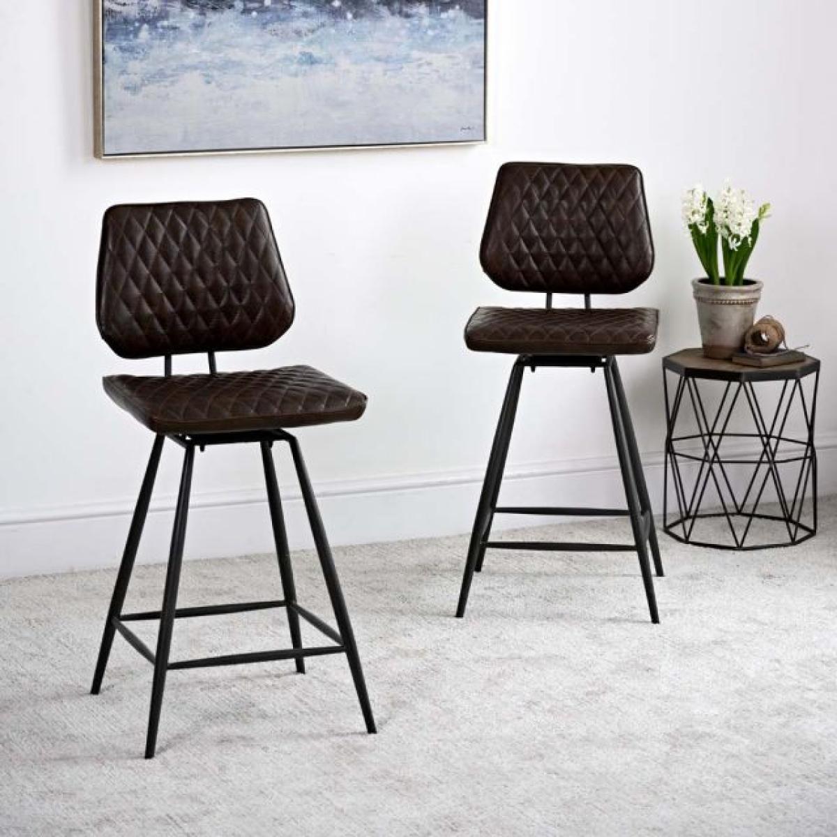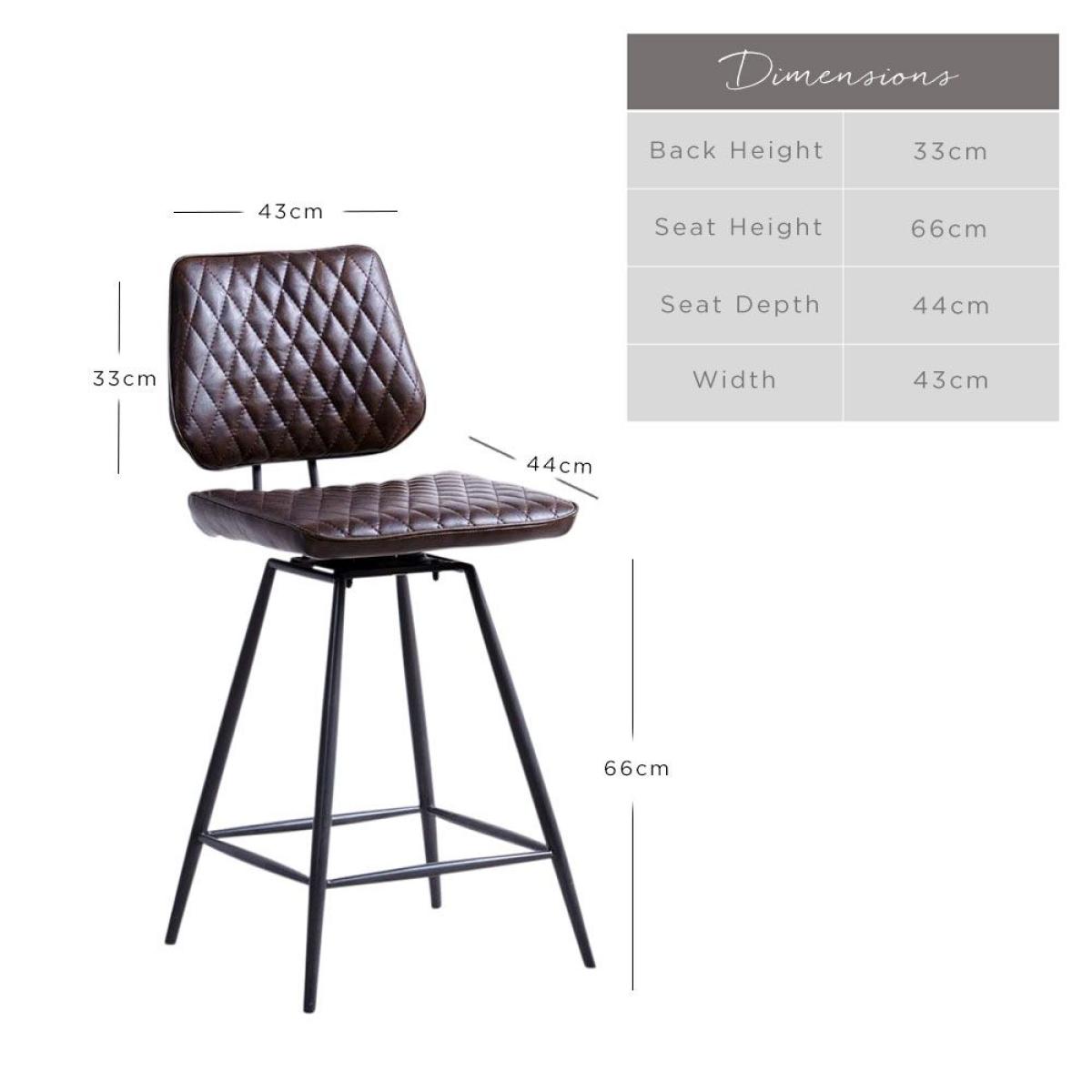 The Digby bar stool features on trend angled metal legs with a quilted upholstered seat for a sophisticated style, perfect for adding some vintage inspired retro tones into your home. The stool includes a twist function to allow you to turn in your chair with ease. Also available in Dark Blue, Tan and Grey. Dimensions: W40cm x D53cm x H97.5cm Grey painted metalwork. Simple self assembly. Sold as a pair