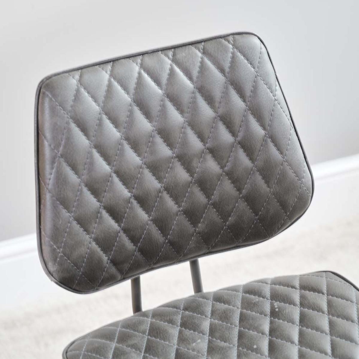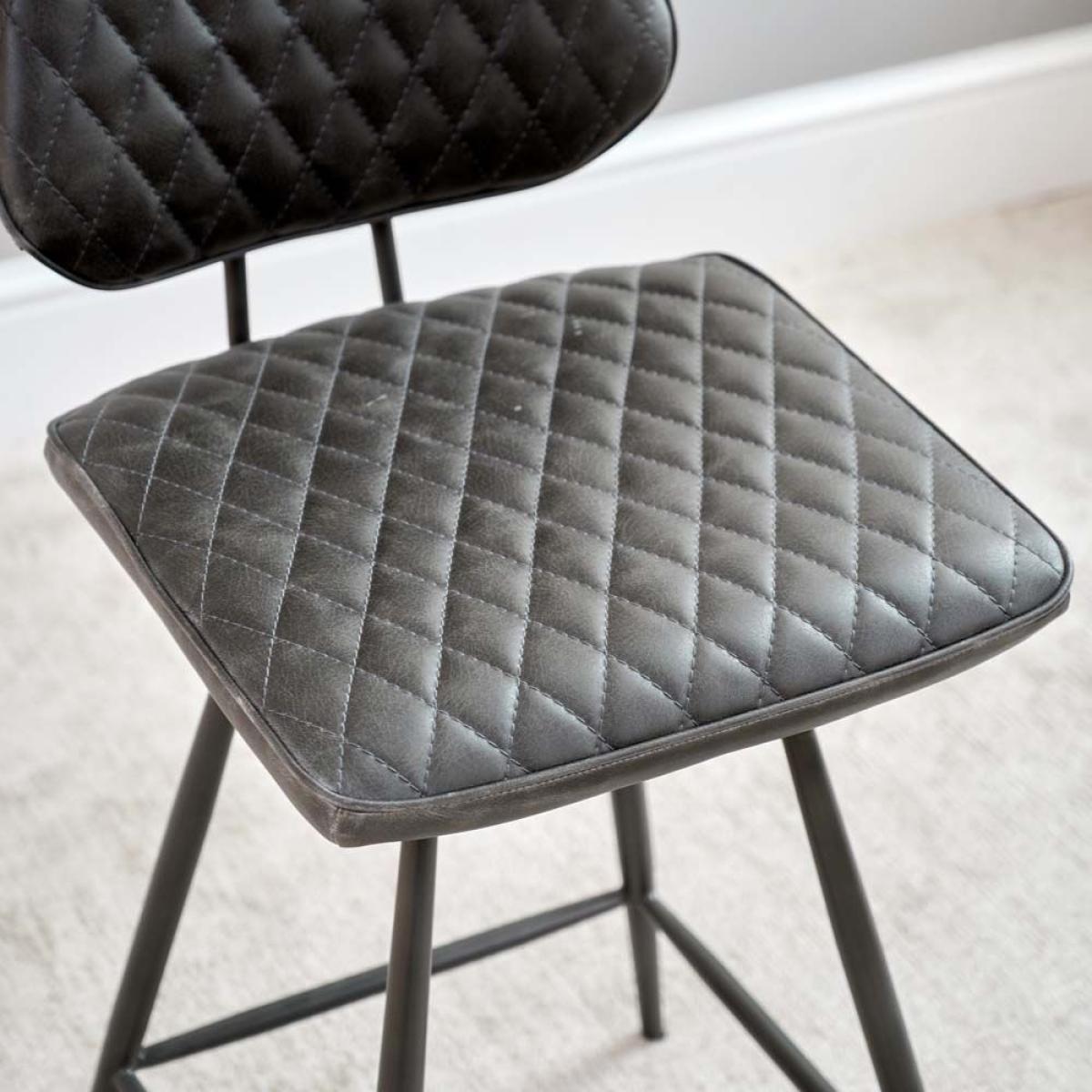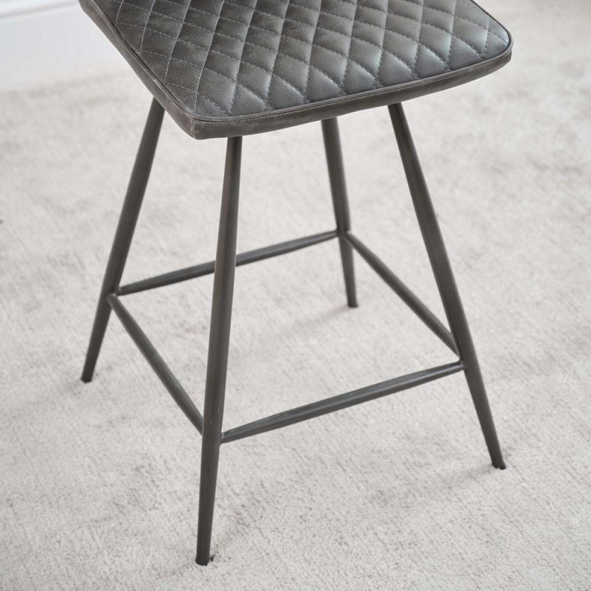 Simple and smart, the Digby bar stool brings an element of class and sophistication to your home with its understated retro design. Upholstered in a deep grey faux leather with dark grey metal framework and legs. The stool also includes a twist function allowing you to rotate with ease. Also available in Dark Blue, Tan and Dark Brown. Dimensions: W40cm x D53cm x H97.5cm Simple self assembly. Sold as a pair