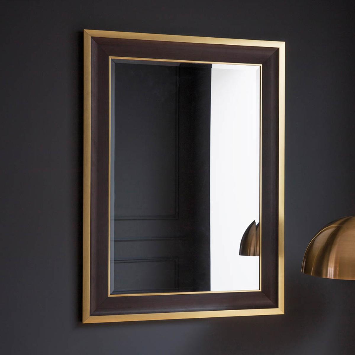 Sophisticated wall mirror with a black and gold finish frame. Shape: Rectangle. Material: Glass, PS. Colour/Finish: Black. Mount Type: Wall.