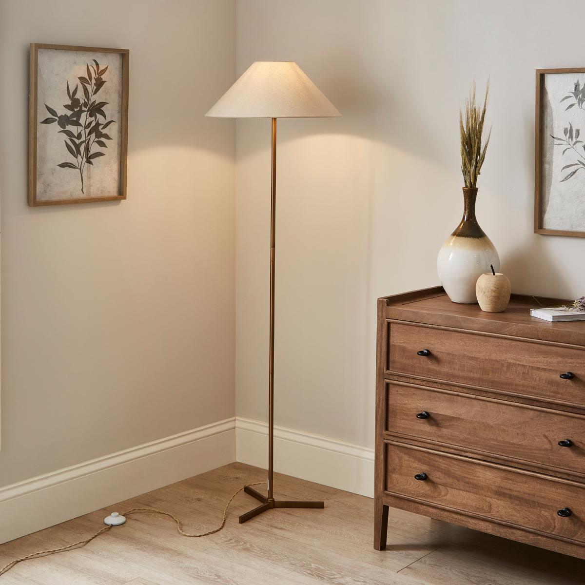 I love the Digby floor lamp for its sleek mid-century tripod design, which adds a touch of retro charm while remaining versatile. It works particularly well in minimalist or mid-century modern interiors, complementing wooden furniture and neutral palettes. Practical styling tips include placing it beside a reading chair or sofa to create a cosy corner, and layering with other textured accessories like soft throws or cushions for added warmth. Its understated look also makes it easy to update with different lampshades or incorporate into more eclectic schemes by pairing it with contemporary or vintage pieces.