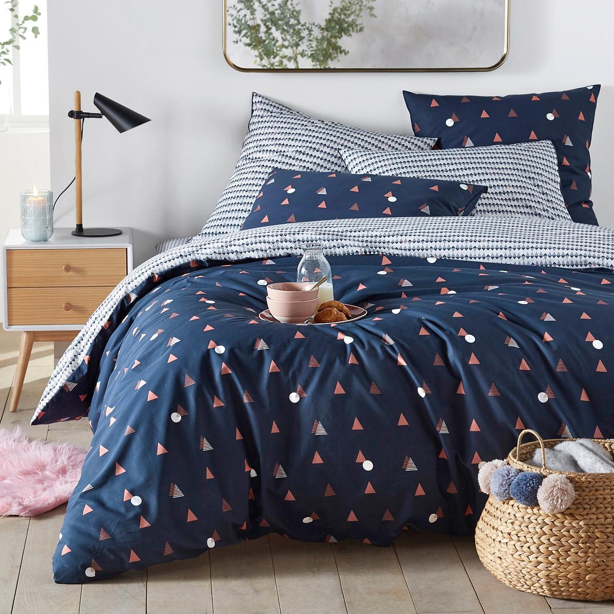 The Digna duvet cover has a colourful and contemporary Scandinavian-inspired geometric print. The cotton percale offers a pleasant feeling of freshness and lightness. Its tight weave makes it particularly soft for premium comfort. A matte and smooth material that will soften over time. Product Details • 100% cotton • Percale • 180 thread count: The higher the thread count, the higher the quality of the weave • Straight buttoned hem Care Advice • Machine washable at 60°C • By washing your laundry at 40°C instead of 60°C, you limit energy consumption. Sizes • 140 x 200cm: Single • 200 x 200cm: Double • 240 x 220cm: King • 260 x 240cm: Super King. Pillowcases sold separately. • OEKO-TEX® Standard 100. Standard 100 certification by OEKO-TEX® tests textile products for harmful substances via an independent, international label.