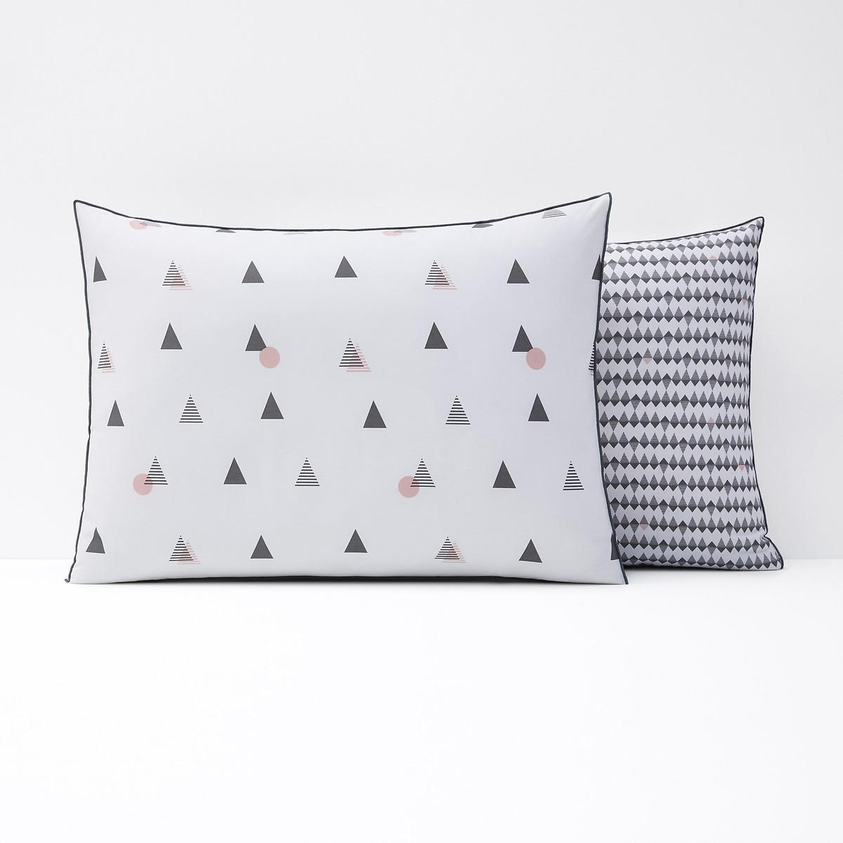 Be inspired by this Scandi-style geometric print pillowcase in grey and pink hues.