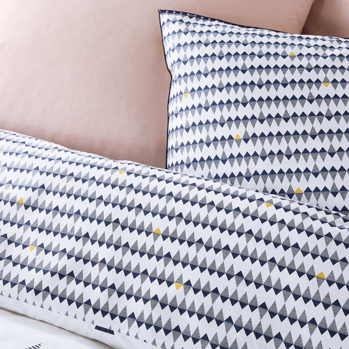 I love this Digna geometric print sheet for its clean, modern vibe and versatile design. Its bold geometric pattern adds visual interest without overwhelming, making it a great choice for contemporary, minimalist, or even eclectic interiors. The cotton percale fabric feels crisp and durable, perfect for everyday use while keeping the bed looking fresh. For styling, pair it with neutral or solid-coloured bedding to let the pattern stand out, or mix with plain accessories in coordinating colours for a cohesive look. It works well in bedrooms that need a touch of graphic appeal but still want a calm, organised feel. Practical tips include using it as a base and adding textured or patterned cushions for a layered, lived-in aesthetic.
