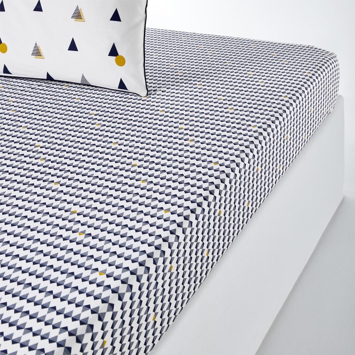 Digna Geometric Printed Cotton Percale Fitted Sheet